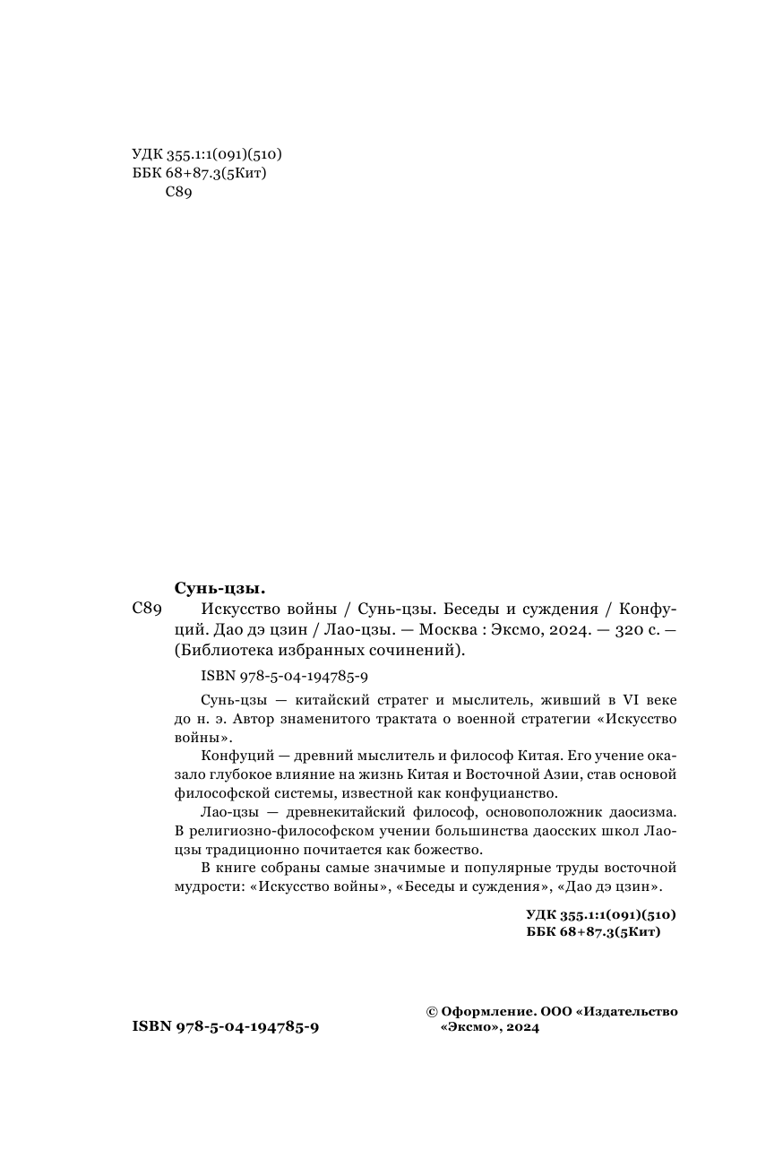Искусство войны. Беседы и суждения. Дао дэ цзин. Три главные книги восточной мудрости (Конфуций, Цзы Лао-Цзы, Сунь-Цзы); Эксмо, 2024