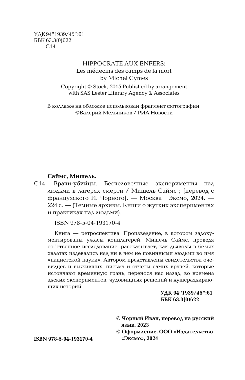 Сервис сравнения цен СкидкаГИД предлагает сравнить цены на товар «Книга: Врачи-убийцы. Бесчеловечные эксперименты над людьми в лагерях смерти (Саймс Мишель); ООО "Издательство "Эксмо", 2024»