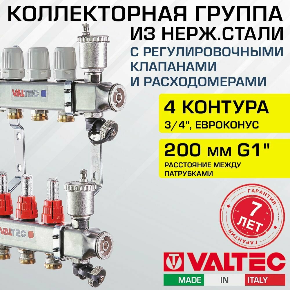 Коллекторная группа со встр. расх. в сборе 1"х4 вых. 3/4" Valtec VTc.586.EMNX.0604