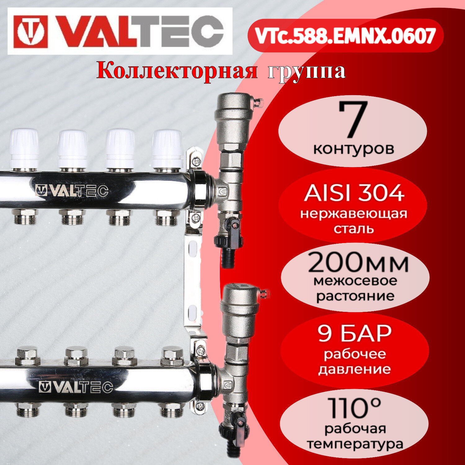 На сегодняшний день товар «Коллекторный блок из нержавеющей стали с клапанами1"х7 вых. (VTc.588. EMNX.0607) Valtec VTc.588.EMNX.0607» можно купить с кешбеком в 1 магазине: Яндекс.Маркет
