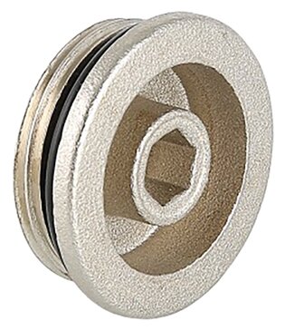 - Латунная никелированная пробка c наружной резьбой, используемая для закрытия неиспользуемого присоединительного отверстия коллектора с условным диаметром 1". Головка – шестигранной формы, под гаечный ключ. Уплотнение – кольцо из синтетического каучука EPDM.