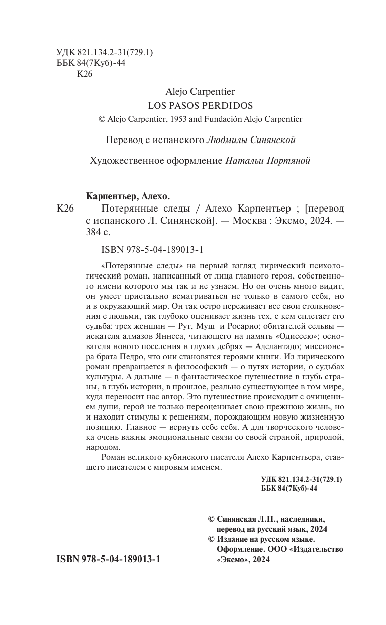 Книга: Потерянные следы (Алехо Карпентьер); Эксмо, Редакция 1, 2024