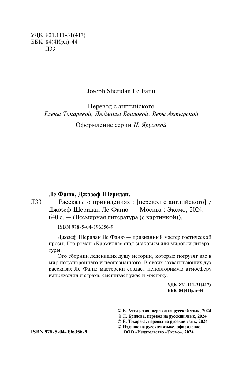Книга: Рассказы о привидениях (Ле Фаню Джозеф Шеридан); ООО "Издательство "Эксмо", 2024