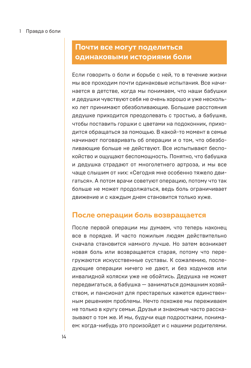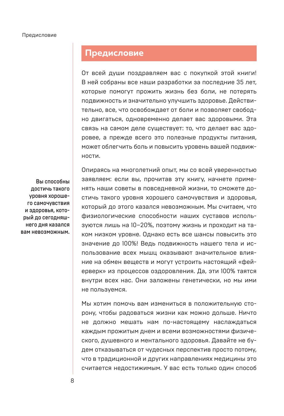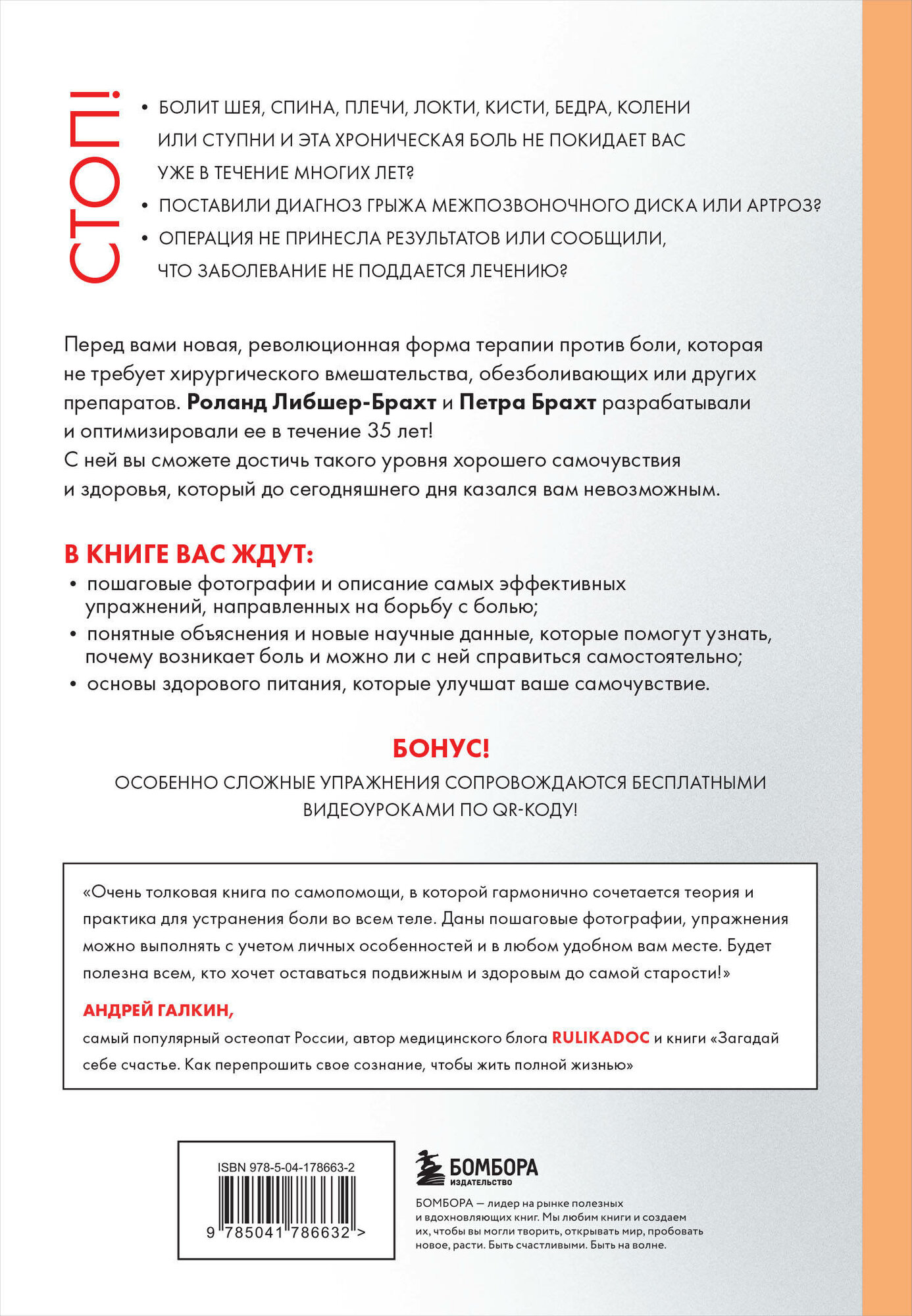 «Наша методика подходит для самолечения или прекрасно дополнит и расширит традиционную схему вашего лечения. Мы уверены, что с помощью упражнений из этой книги каждый сможет жить без боли, оставаться здоровыми и гибкими до самой старости. Вы еще будете с внуками в футбол играть — так мы всегда говорим нашим пациентам». — Р. Либшер-Брахт