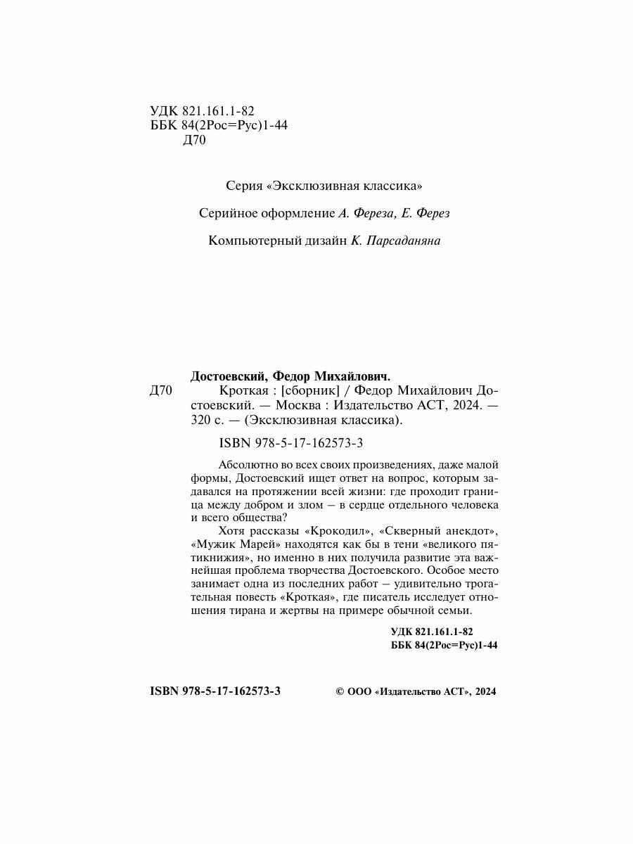 Книга: Кроткая (Достоевский Федор Михайлович); АСТ, 2024