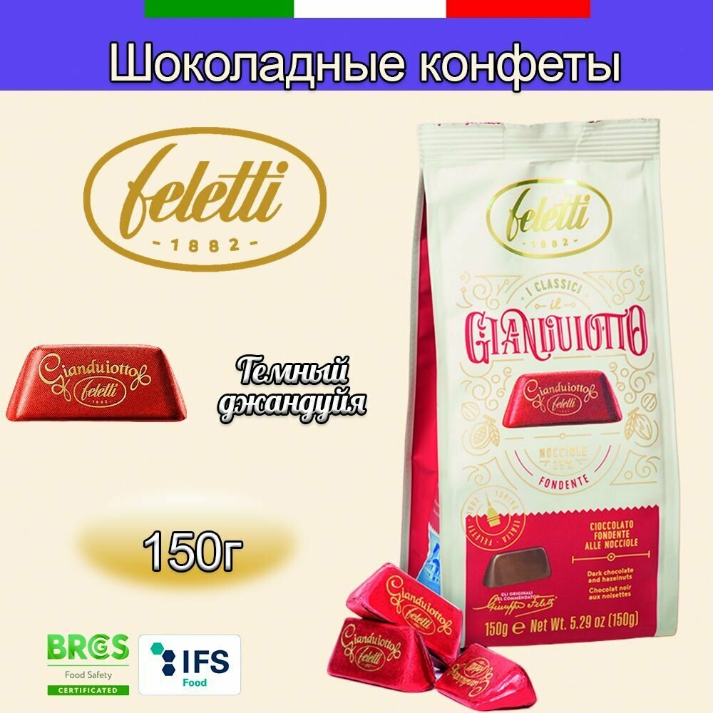 Конфеты шоколадные Feletti Fondente джандуйя фундук темный шоколад 150 г
