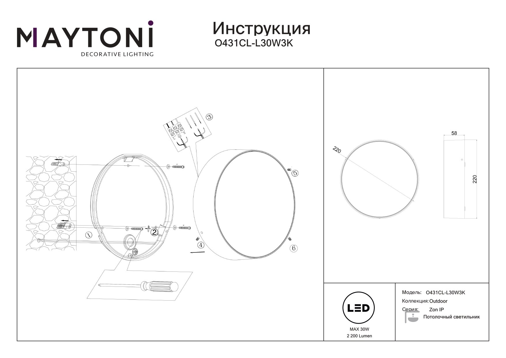 Уличный потолочный светильник Maytoni Zon IP O431CL-L30W3K