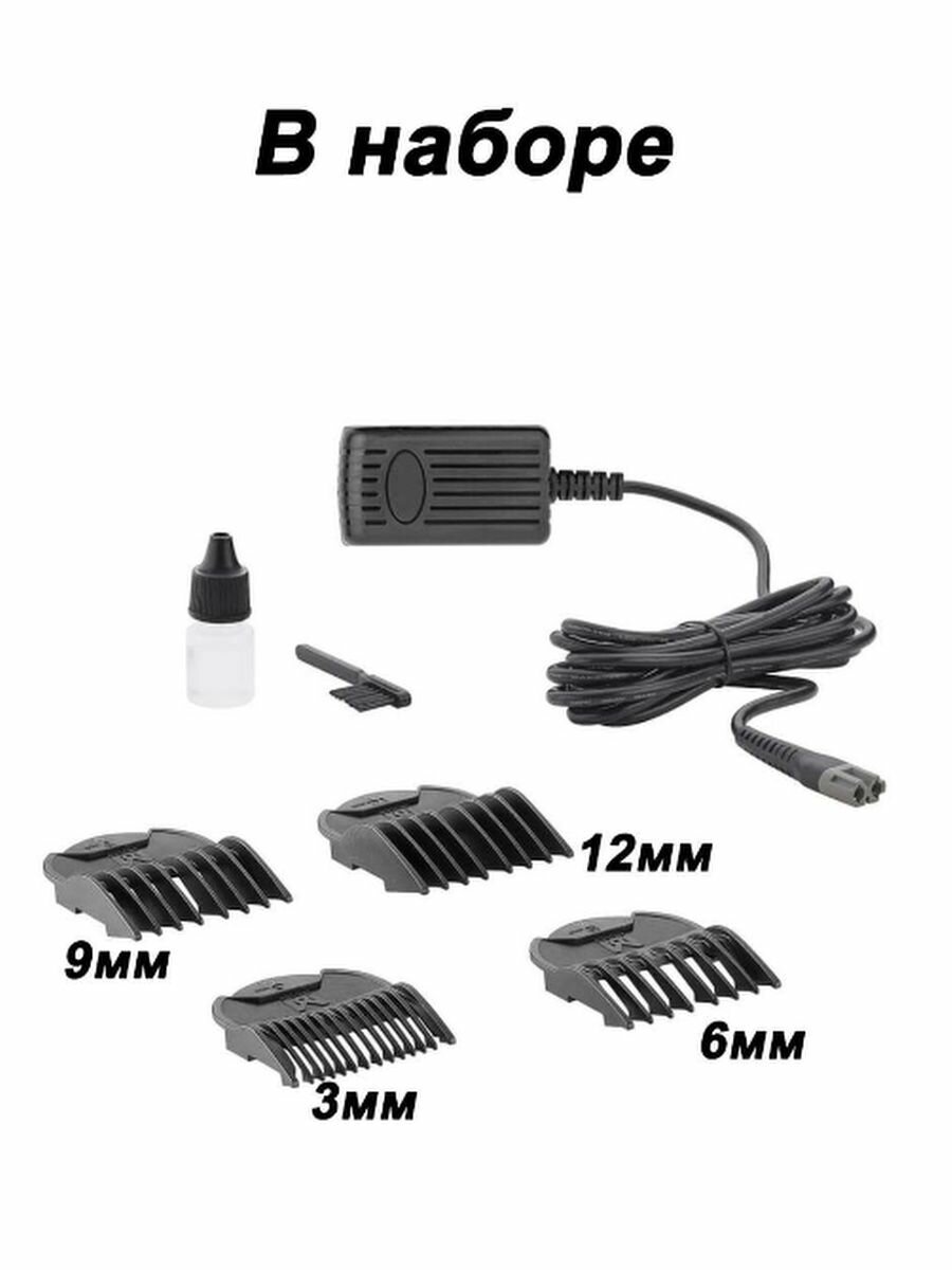 | Насадки | для стрижки (3 мм, 6 мм, 9 мм, 12 мм) |