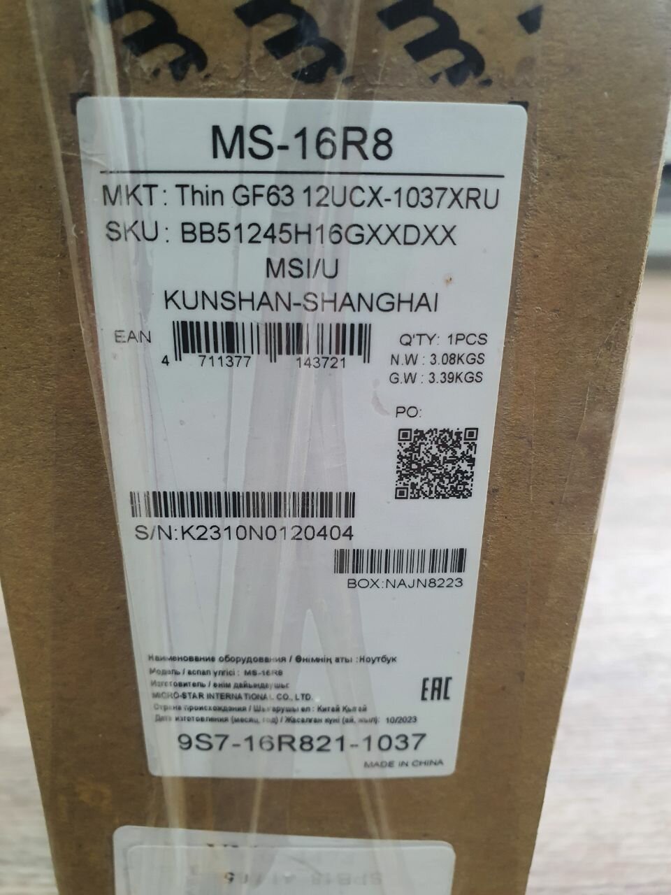 Модель: GF63 Thin 12UCX-1037XRU (9S7-16R821-1037)