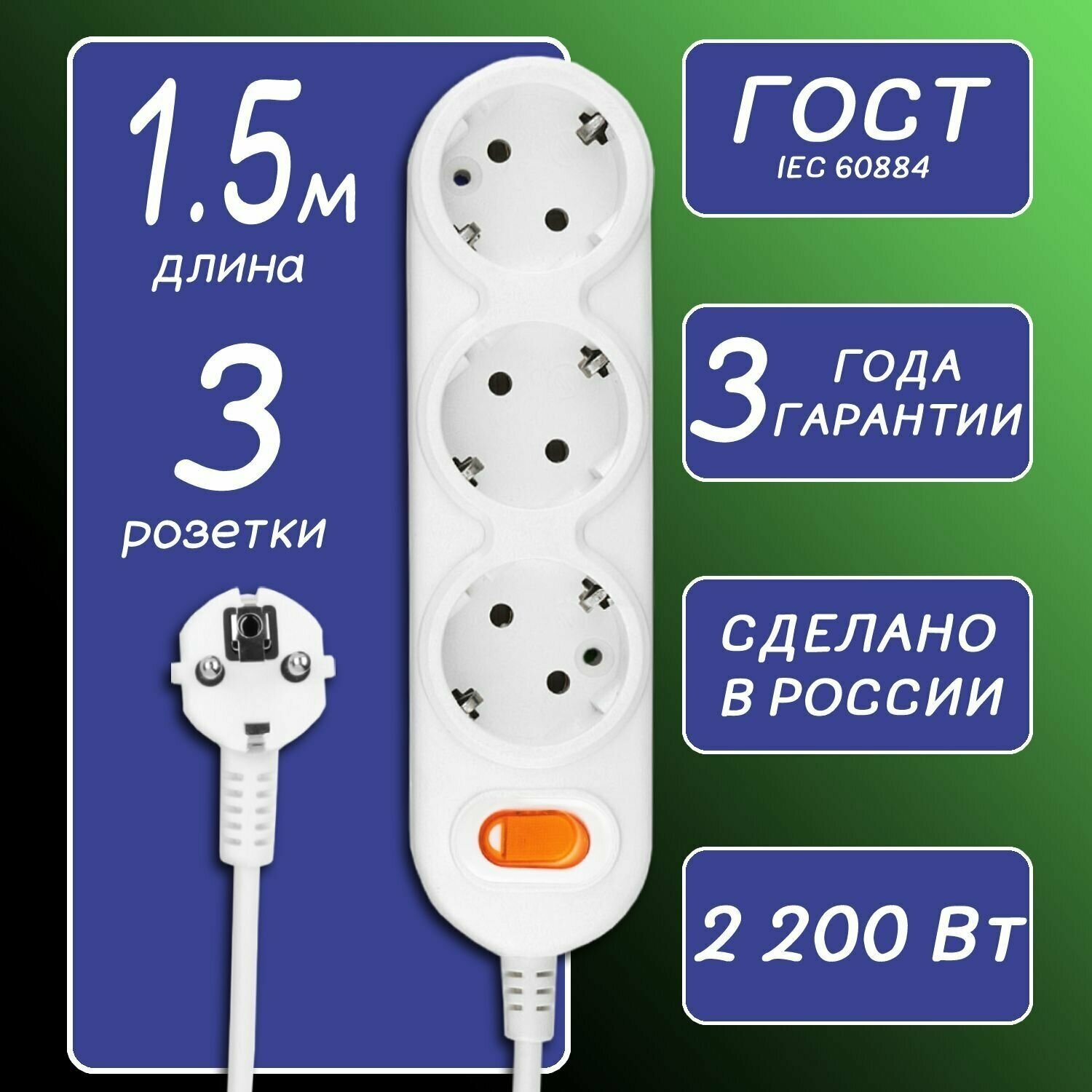 Сетевой фильтр Power Cube 3р с/з выкл. 2200 Вт 10 А 1.5 м 3*075 PC-2-1,5M