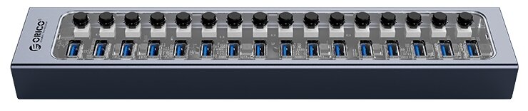 Концентратор Orico 16*USB-A 3.0 вход USB-A 3.0 серый/прозрачный ORICO-AT2U3-16AB-EU-GY-BP (размер: 280х58х26 мм)