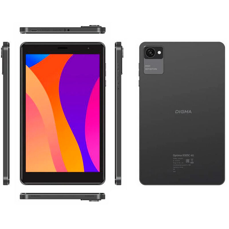 Планшет 8'' Digma 1975764 SC9863A/32GB/128GB/1280x800/IPS/5Mpix/2Mpix/BT/GPS/WiFi/Touch/3G/4G/Android 12/4000mAh/grey Optima 8305C 4G