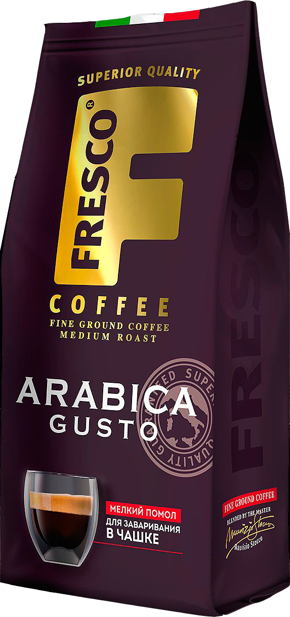 КофеFresco Arabica Gusto - blend 4, купаж из зерен Arabica Brazil с небольшим добавлением Robusta Uganda. Напиток разработан для любителей заваривать кофе в чашке или турке.
