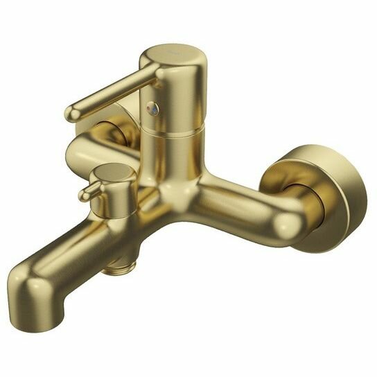 Стильный смеситель для ванны сочетает актуальный современный дизайн и новый трендовый оттенок матового золота с брашированным покрытием. Тонкая удлиненная ручка добавляет изящества и комфорт в управлении. Расстояние между ручкой и изливом увеличено для большего удобства. Без душевых аксессуаров в комплекте. • Керамический картридж обеспечивает точную регулировку температуры и напора воды за счет особенно плавного хода ручки смесителя.• Керамический дивертор надежно переключает поток воды даже при минимальном давлении воды. • Поворотный силиконовый аэратор Neoperl® гарантирует ровный мягкий поток воды без брызг. Легко чистится от загрязнений, ржавчины и известковых отложений: достаточно провести по нему пальцем.• Покрытие устойчиво к коррозии, появлению царапин, сколов и потускнению. На протяжении многих лет будет выглядеть как новое.• Надежный корпус из прочной латуни — стойкий к коррозии, изменениям давления и перепадам температуры воды.Гарантия на смесители IDDIS® – 10 лет.