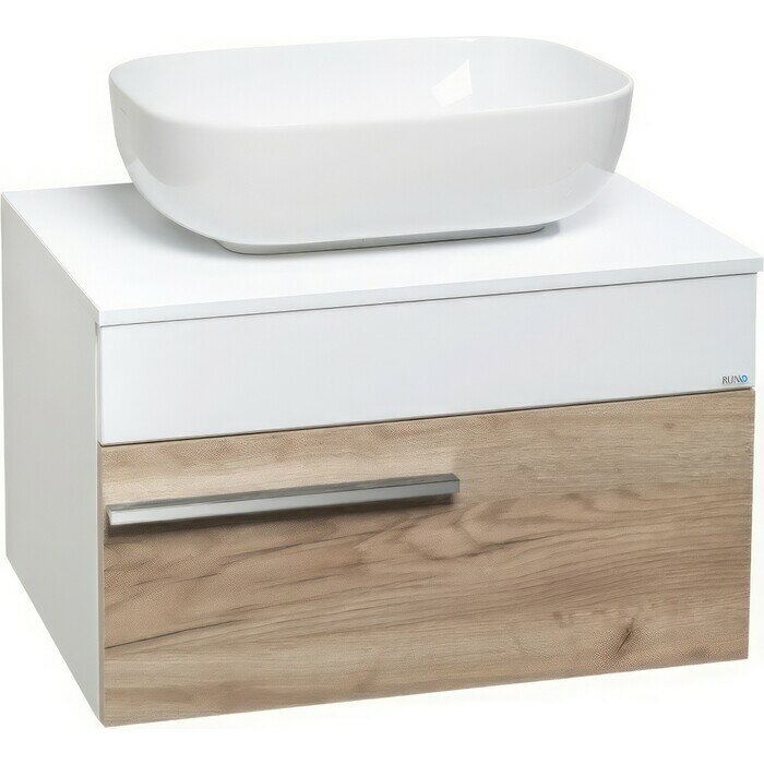 Сервис сравнения цен СкидкаГИД предлагает сравнить цены на товар «Тумба с раковиной Runo Вудлайн 65 см подвесная, белая, крафтовый дуб»