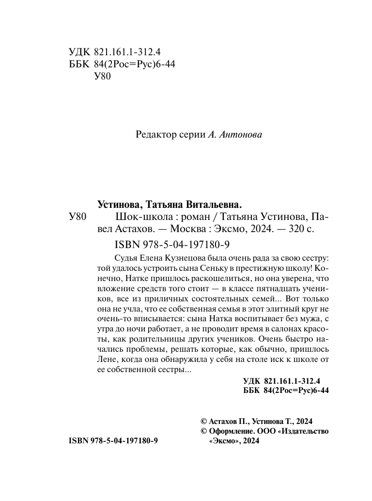Книга: Шок-школа (Устинова Татьяна Витальевна, Астахов Павел Алексеевич); ООО "Издательство "Эксмо", 2024