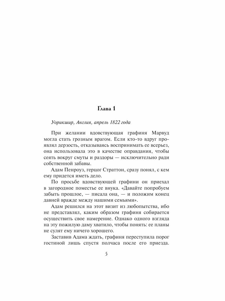 Декадент и соблазнитель — таким знает лондонский свет скандального Адама Пенроуза, герцога Страттона. Однако под этой легкомысленной маской скрывается человек, одержимый жаждой мести за смерть и позор своего отца, несправедливо обвиненного в предательстве.