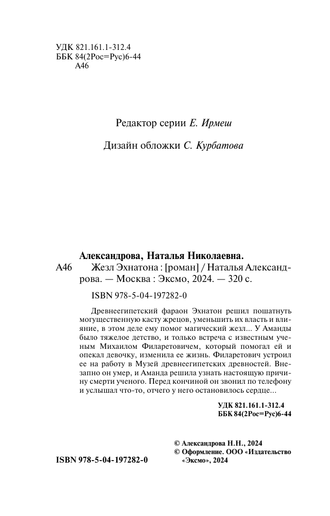 Книга: Жезл Эхнатона (Александрова Наталья Николаевна); ООО "Издательство "Эксмо", 2024