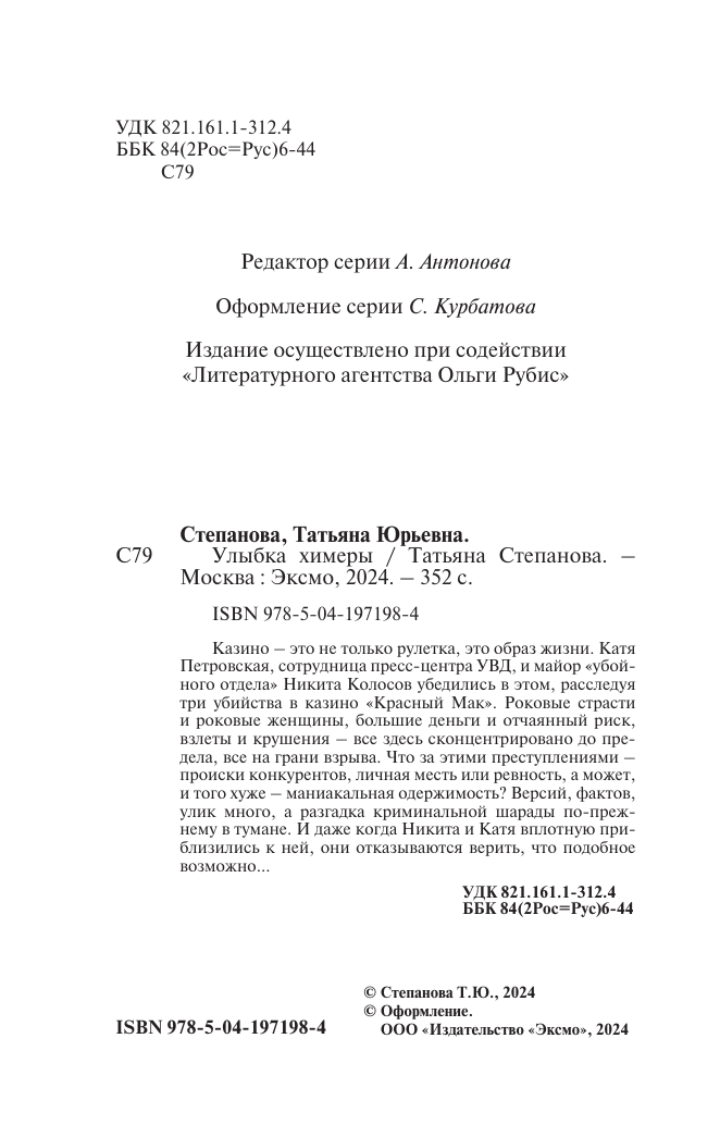 Книга: Улыбка химеры (Степанова Татьяна Юрьевна); ООО "Издательство "Эксмо", 2024