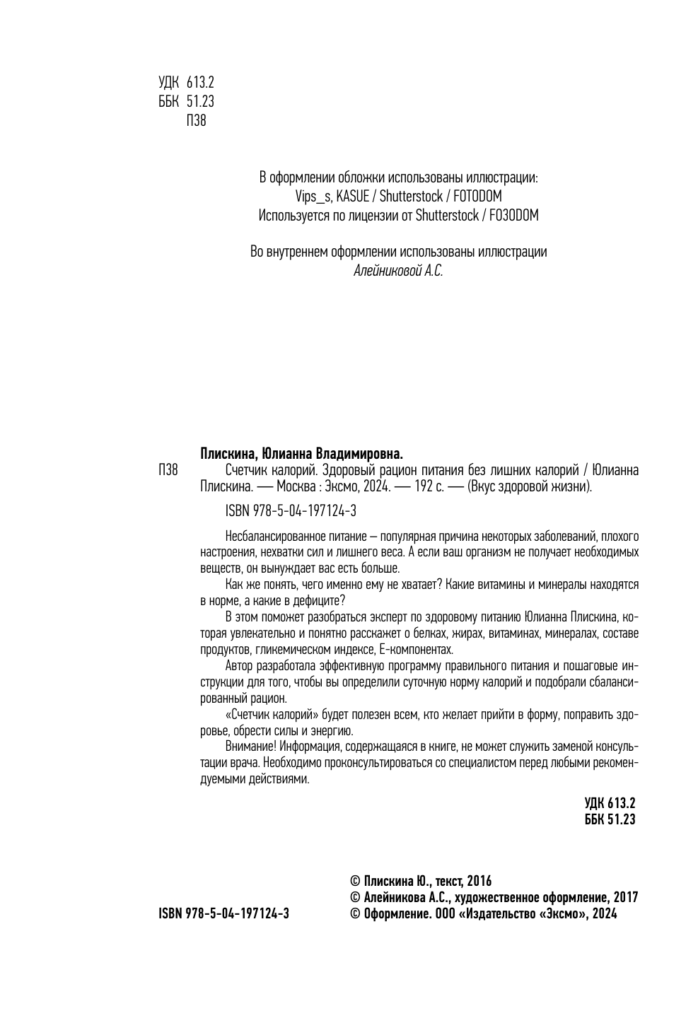 Счетчик калорий. Здоровый рацион питания без лишних калорий (Плискина Юлианна Владимировна); ООО "Издательство "Эксмо", 2024