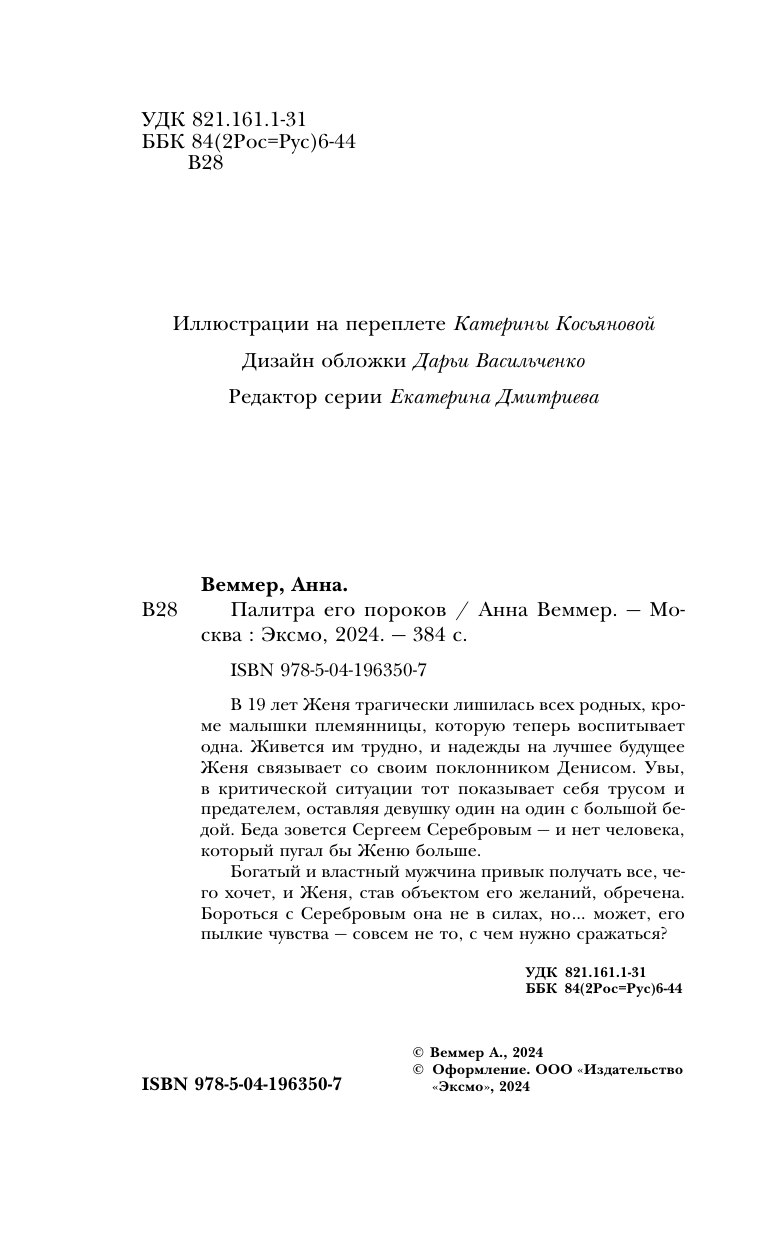 Книга: Палитра его пороков (Анна Веммер); Эксмо, Редакция 1, 2024