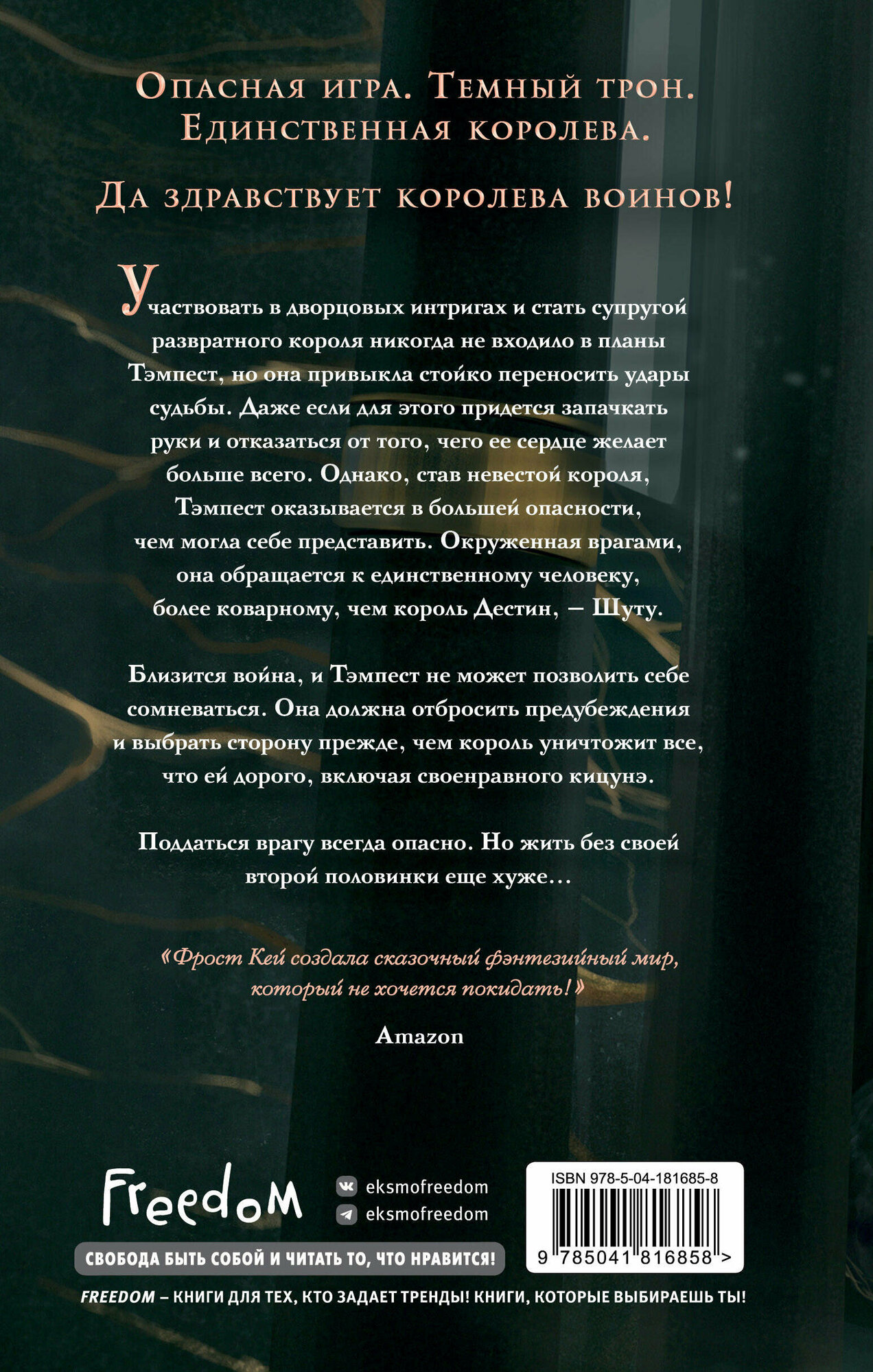 Участвовать в дворцовых интригах и стать супругой развратного короля никогда не входило в планы Тэмпест, но она привыкла стойко переносить удары судьбы. Даже если для этого придется запачкать руки и отказаться от того, чего ее сердце желает больше всего. Однако, став невестой короля, Тэмпест оказывается в большей опасности, чем могла себе представить. Окруженная врагами, она обращается к единственному человеку, более коварному, чем король Дестин, — Шуту.
