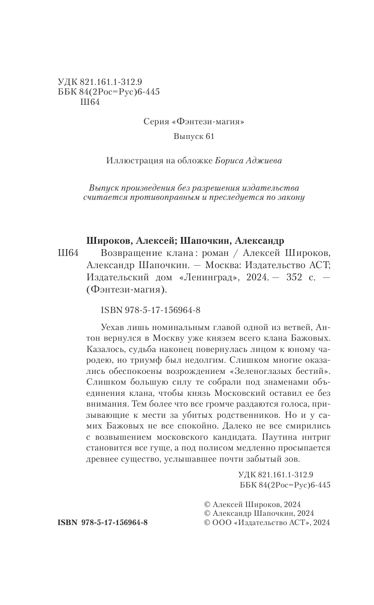 Книга: Возвращение клана (Александр Игоревич Шапочкин, Алексей Викторович Широков); АСТ, 2024