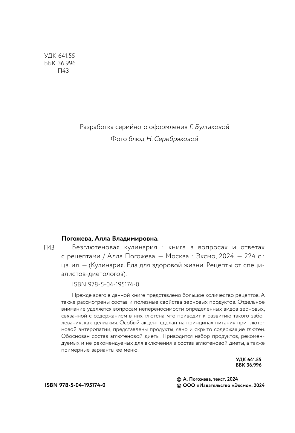 Безглютеновая кулинария. Книга в вопросах и ответах с рецептами (Алла Владимировна Погожева); Эксмо, 2024