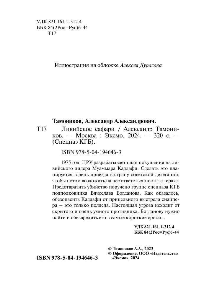 Книга: Ливийское сафари (Тамоников Александр Александрович); ООО "Издательство "Эксмо", 2024