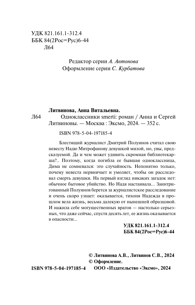 Книга: Одноклассники smerti (Сергей Витальевич Литвинов, Анна Витальевна Литвинова); Эксмо, 2024