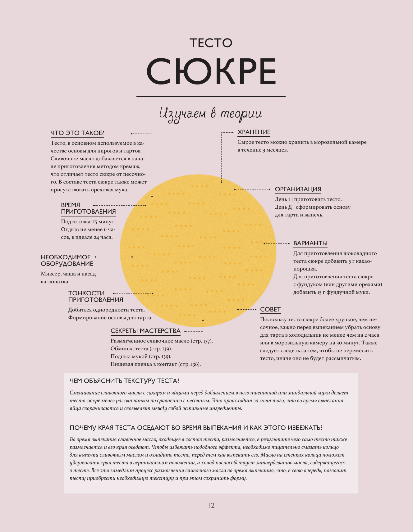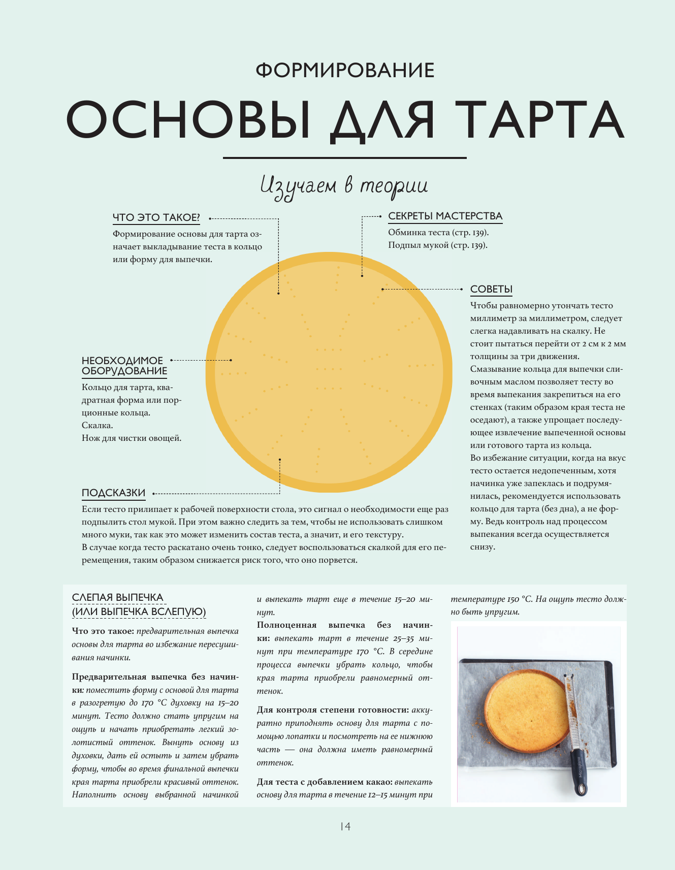 Книга — мастер-класс! Авторы выбрали базовые рецепты для начала: тесто и бисквиты, кремы, ганаш и карамель, меренги, муссы и глазури. Это то, что является основой каждого тарта. Далее, когда освоена база, предлагаются классические рецепты: тарты с фруктами и ягодами, сопровождаемые шоколадом, карамелью или ванилью. И в конце дан иллюстрированный глоссарий: декор, нарезки фруктов, кухонные принадлежности и оборудование, основные техники и приемы. Каждый рецепты делится на две части: «изучаем в теории» (схема изделия с объяснениями), «применяем на практике» (пошаговые фото и приготовление). Все процессы досконально разобраны и наглядно показаны. После знакомства с книгой вы выходите с ощущением, что побывали на настоящем мастер-классе и стали настоящими профи в создании тартов.