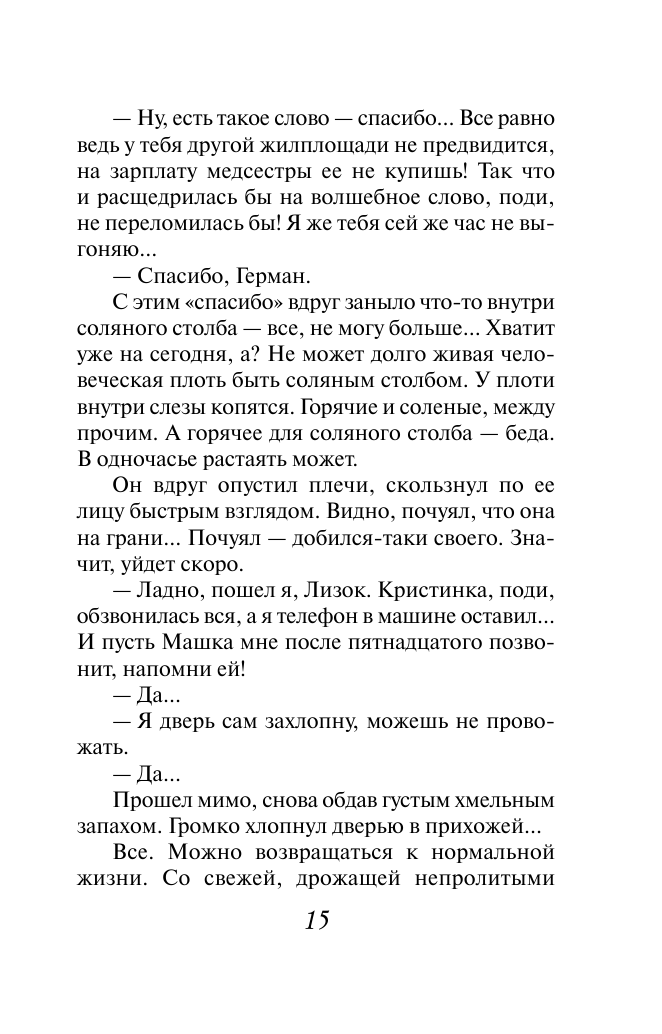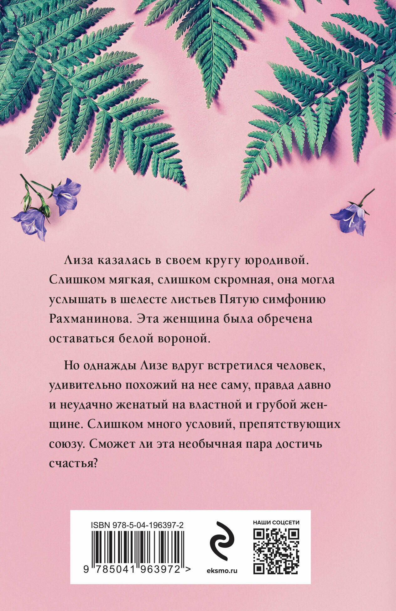 Лиза казалась в своем кругу юродивой. Слишком мягкая, слишком скромная, она могла услышать в шелесте листьев пятую симфонию Рахманинова. Эта женщина была обречена оставаться белой вороной. Но однажды Лизе вдруг встретился человек, удивительно похожий на нее саму, правда, давно и неудачно женатый на властной и грубой женщине. Слишком много условий, препятствующих союзу. Сможет ли эта необычная пара достичь счастья?