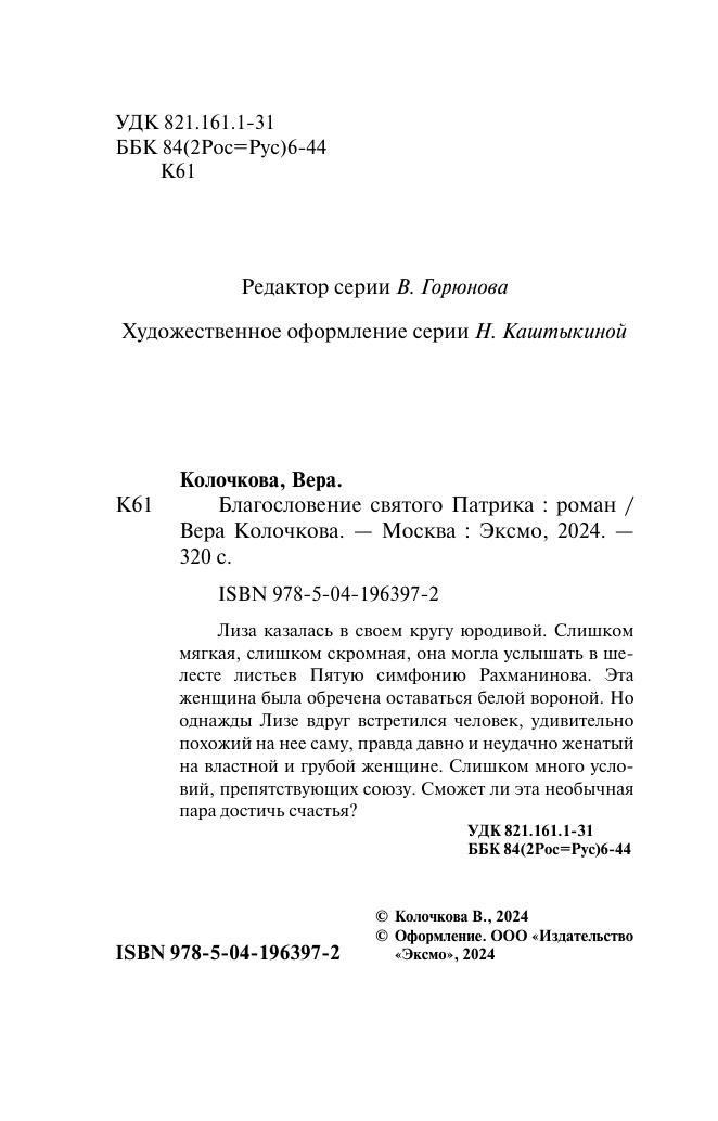 Благословение святого Патрика (Колочкова Вера Александровна); Эксмо, Редакция 1, 2024