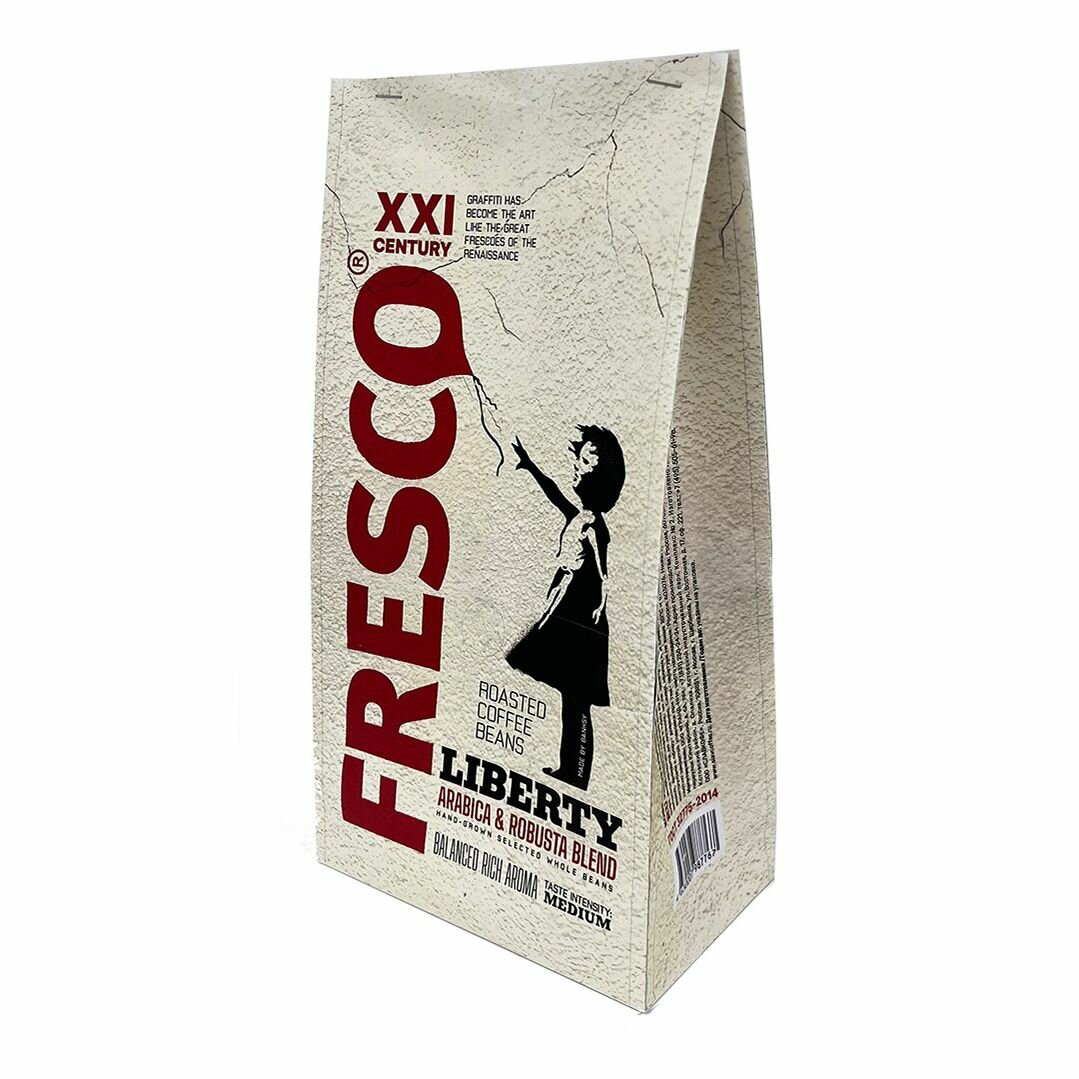 FRESCO LIBERTY это идеальное сочетание традиций и новаторства. Создание этого авторского купажа получило вдохновение от сочетания сюжетов старинных фресок в современных граффити, как воплощение свободы в искусстве. Cреднеобжаренный кофе, купаж из зерен бразильской арабики сорта Сантос и угандийской робусты. Для купажирования, обжарки и упаковки используется лучшее итальянское оборудование. Контроль качества осуществляется профессиональными Q-грейдерами.