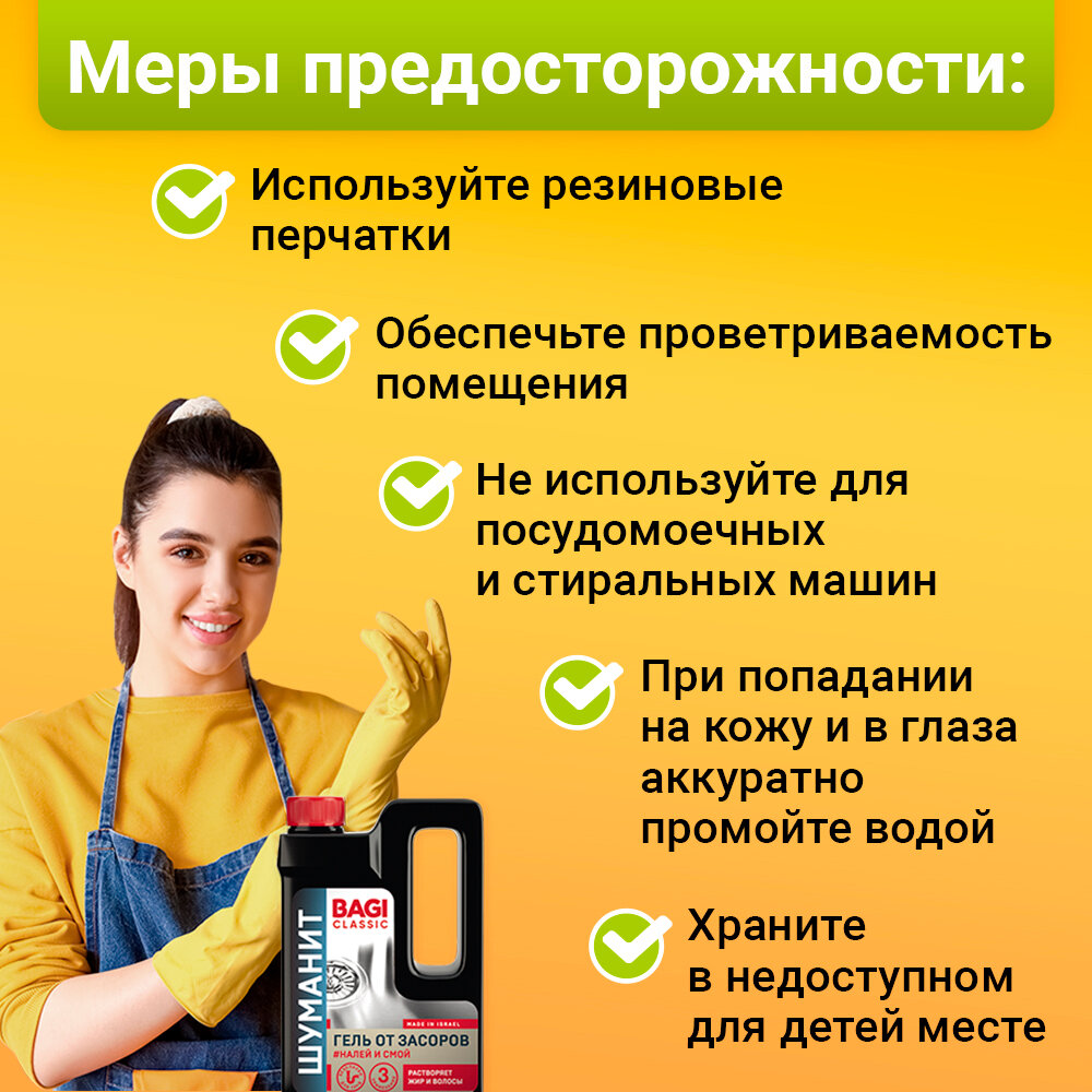 средство чистящее БАГИ Classic Шуманит для удаления засоров в трубах гель 450мл (7290012514623)