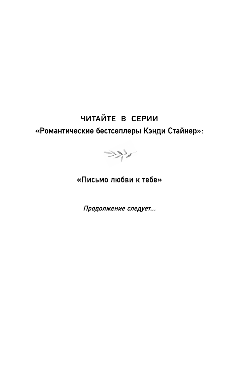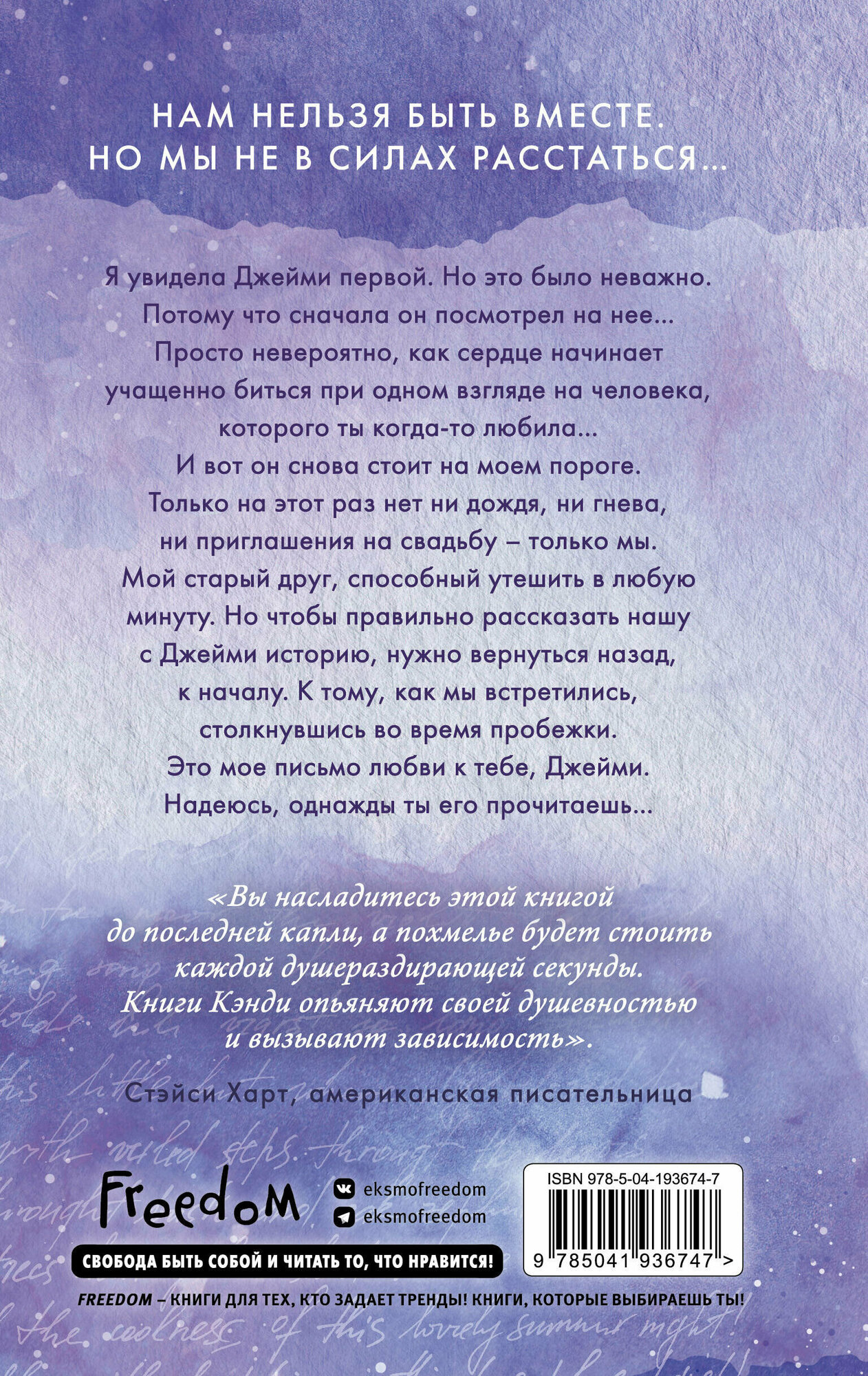 Невероятно захватывающий, чувственный и эмоциональный роман Кэнди Стайнер! Сенсация зарубежного книжного сообщества! Книга выдержала 5 переизданий в США и вошла в Топ-10 книг по версии Amazon! Пронзительная, глубокая и трогательная история! Настоящие эмоциональные американские горки для всех любителей драмы! Придется по душе фанатам Эммы Скотт и Дженнифер Хартманн! Я увидела Джейми первой. Но это было неважно. Потому что сначала он посмотрел на нее. Просто невероятно, как сердце начинает учащенно биться при одном взгляде на человека, которого ты когда-то любила. И вот он снова стоит на моем пороге. Только на этот раз нет ни дождя, ни гнева, ни приглашения на свадьбу - только мы. Мой старый друг, способный утешить в любую минуту. Но чтобы правильно рассказать нашу с Джейми историю, нужно вернуться назад, к началу. К тому, как мы встретились в детстве, столкнувшись на велосипедах. Это мое письмо любви к тебе, Джейми. Надеюсь, однажды ты его прочитаешь. «Вы насладитесь этой книгой до последней капли, а похмелье будет стоить каждой душераздирающей секунды. Книги Кэнди опьяняют своей душевностью и вызывают зависимость». - Стэйси Харт, американская писательница
