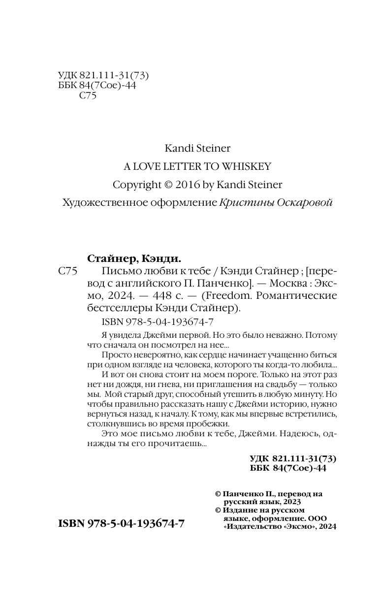 Книга: Письмо любви к тебе (Кэнди Стайнер); Эксмо, Freedom, 2024