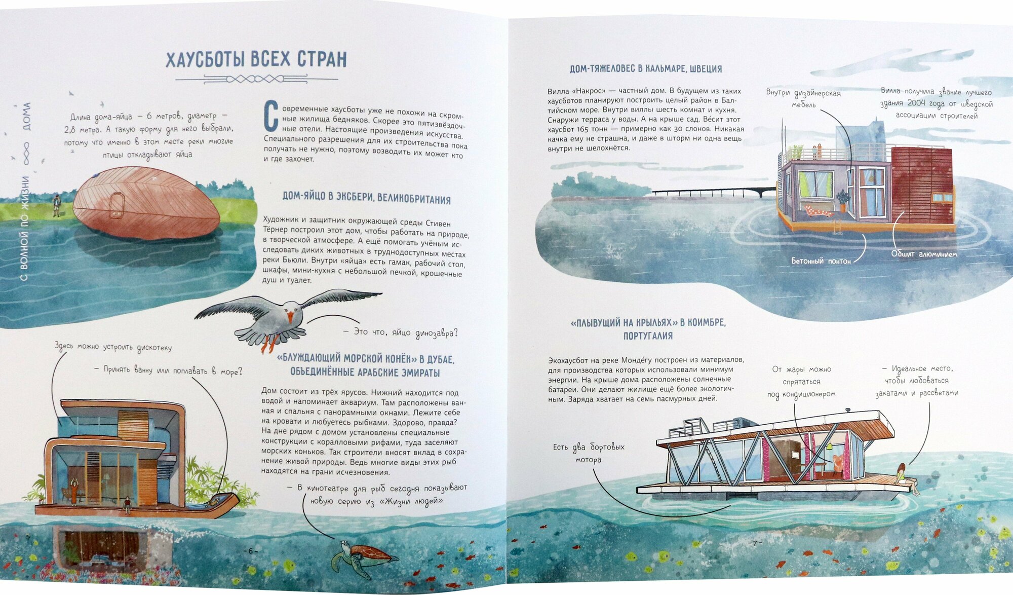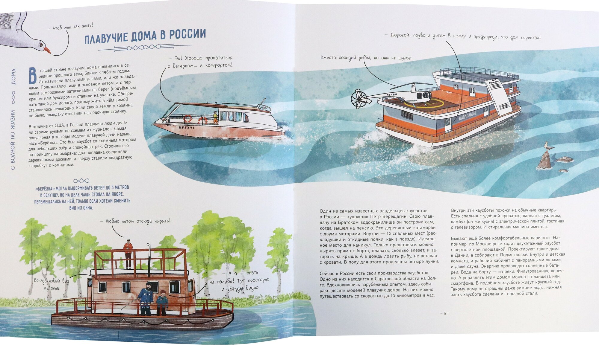Как вы думаете, кому и зачем пришло в голову жить на воде? Из чего можно построить плавучий дом? Какие правила есть у водной жизни? Давайте проплывем по улицам водных деревень, заглянем на плавучую ферму, перекусим пиццей на дне океана и найдем ответы на эти вопросы. Заодно отдохнем в подводном отеле, покатаемся в автобусе-амфибии, узнаем, как устроена плавучая электростанция, познакомимся со знаменитыми путешественниками, которые в одиночку переплыли океан. А еще наденем акваланг и посетим подводный музей. Готовы? Тогда открывайте книгу и плывите за нами! Для среднего школьного возраста.