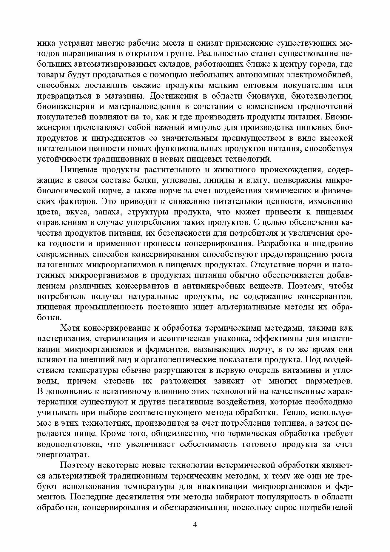 Представлен обзор существующих современных технологий обработки пищевых продуктов, преимущества и недостатки наиболее используемых промышленных методов технологической обработки и дезактивации микроорганизмов. Дан краткий анализ тепловых методов обработки, таких как пастеризация, стерилизация, сушка, асептическая упаковка, и даны современные способы обработки, основанные на физико-химических процессах, такие как ультразвук, ультрафиолетовое излучение, озонирование, высокое гидростатическое давление, холодная плазма и другие. Представленный материал может быть использован в качестве научного издания для аспирантов, магистрантов и студентов, обучающихся технологиям, процессам и аппаратам пищевых производств, а также специалистам пищевой промышленности при выборе и внедрении технологии обработки плодоовощного сырья и методов консервирования.