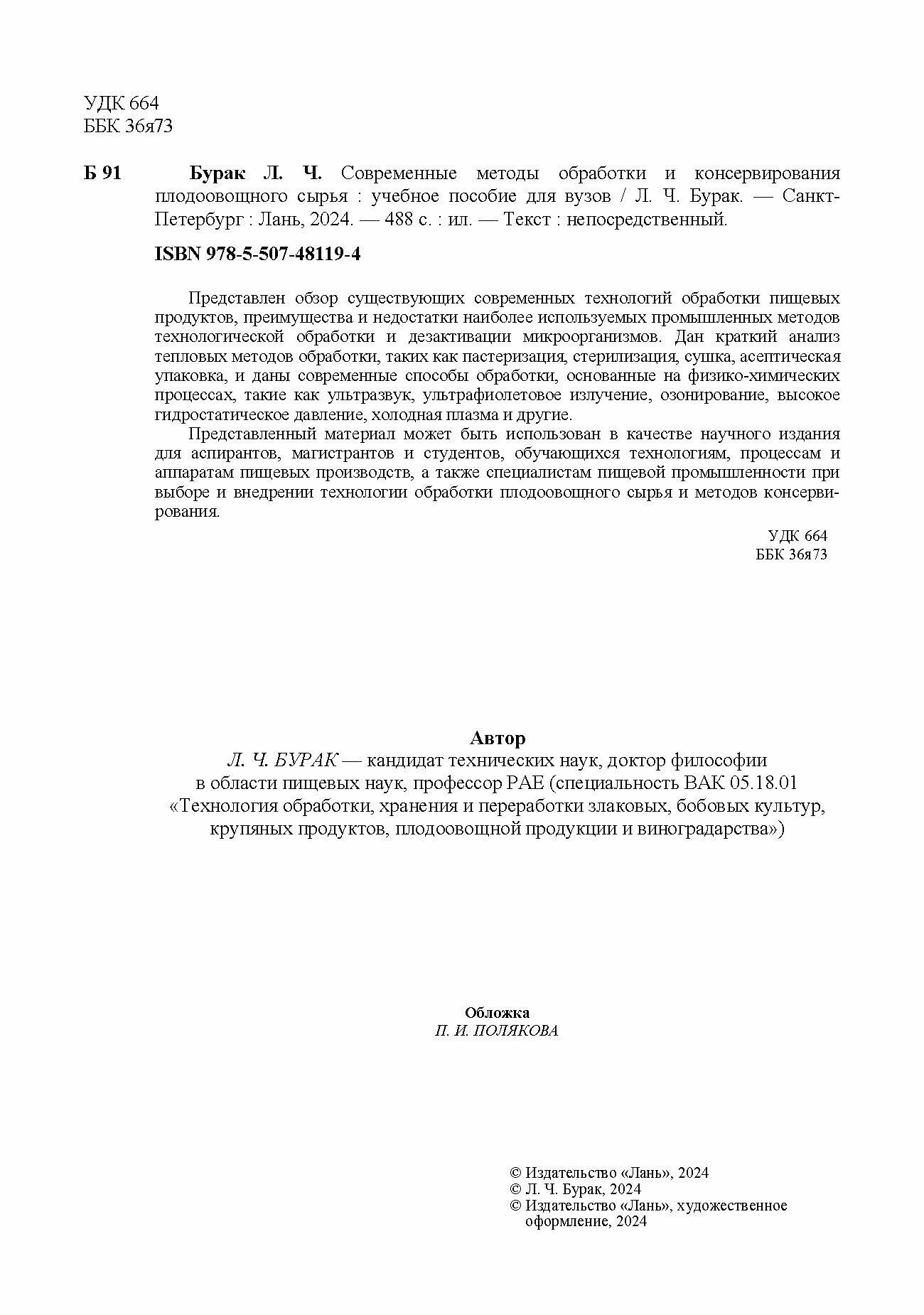 Современные методы обработки и консервирования плодоовощного сырья. Учебное пособие для вузов (Бурак Леонид Чеславович); Лань, 2024
