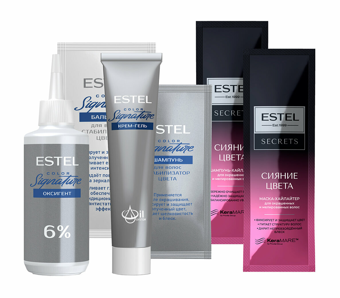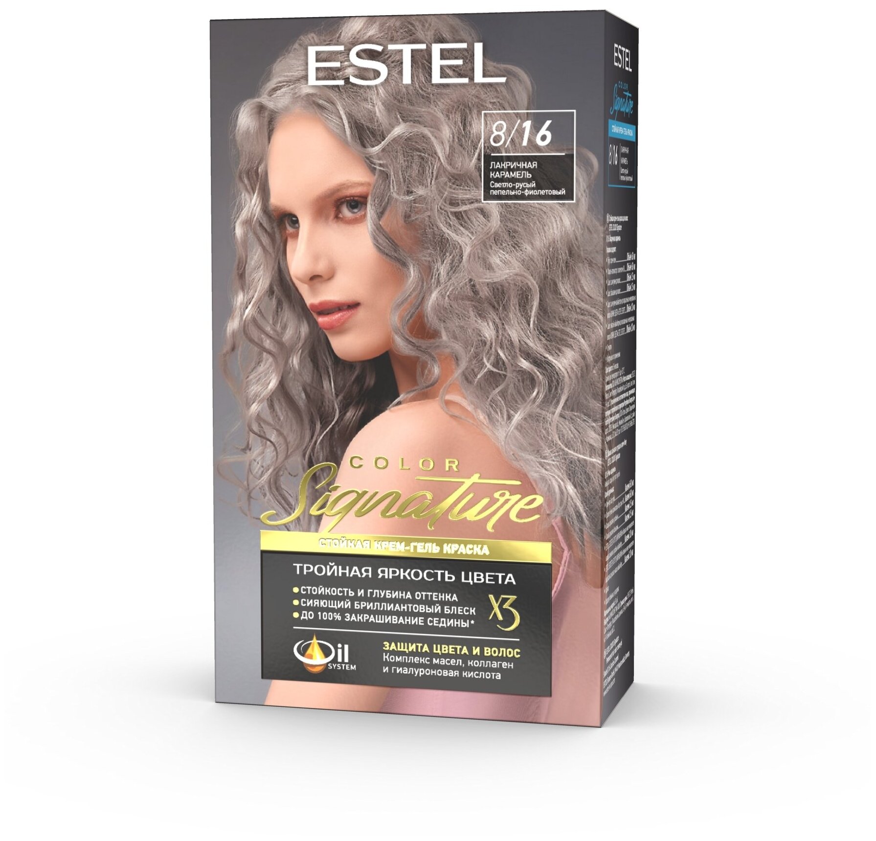 Крем-гель краска для волос ESTEL COLOR Signature результат сотрудничества науки и творчества экспертов лаборатории ESTEL и колористов. Профессиональная технология стойкого окрашивания, которая обеспечивает насыщенный и сияющий цвет от корней до кончиков. Вас удивит легкость применения крем-геля краска для волос ESTEL Signature с нежной текстурой и подарит вам стойкий, глубокий и сияющий цвет. Откройте для себя тройную Яркость цвета и блеск бриллиантов. Обогащена комплексом ценных масел, гиалуроновой кислотой ESTEL ES 6% и коллагеном. Придает яркий цвет и бриллиантовый блеск. Закрашивает седину. Обладает высокой стойкостью.