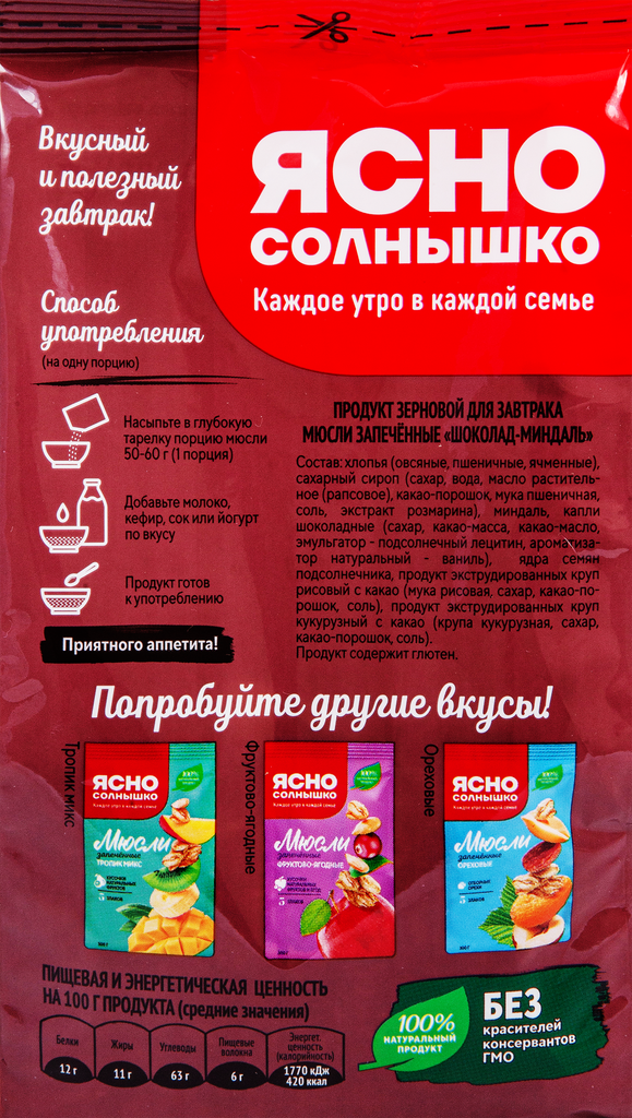 Сухие завтраки, мюсли Ясно Солнышко
