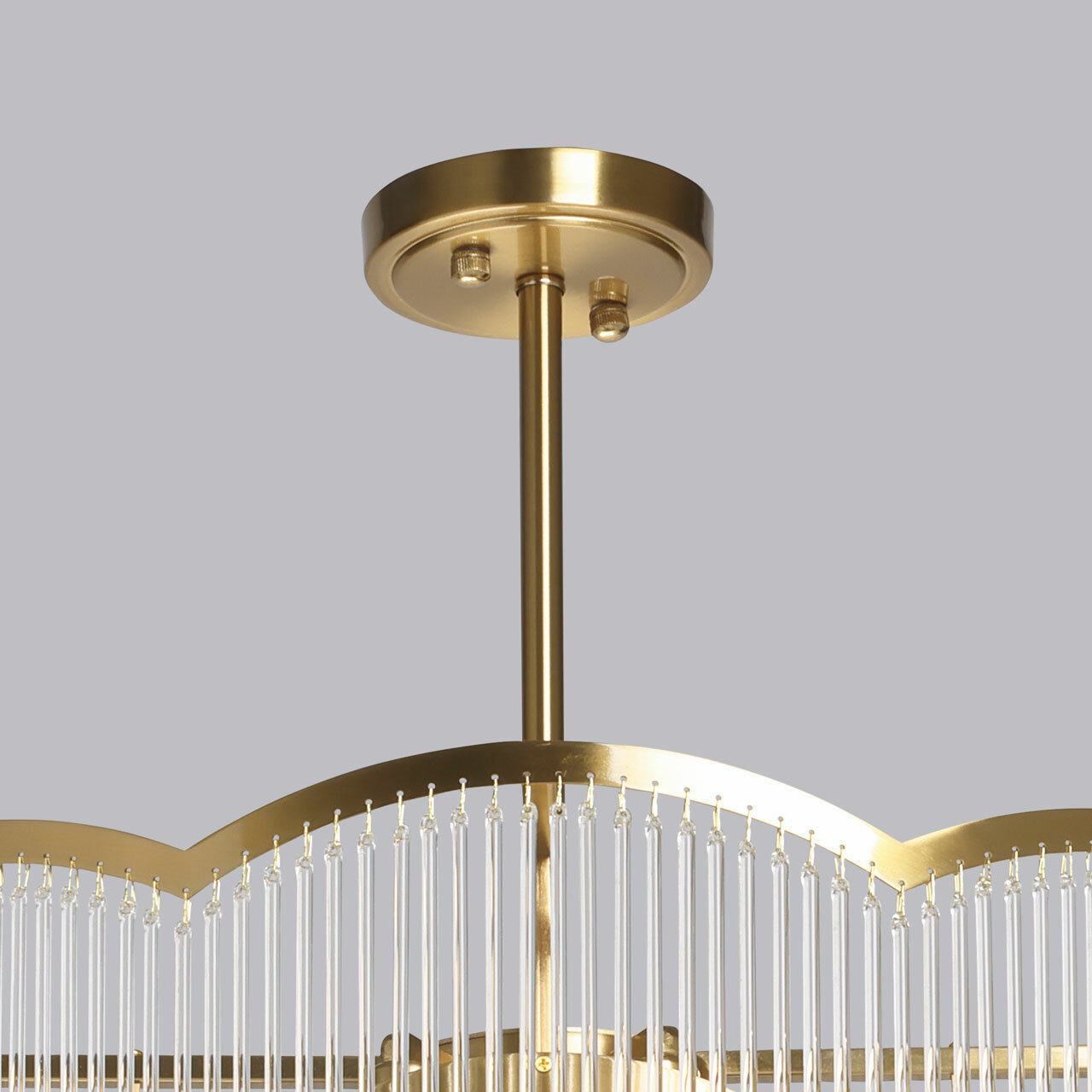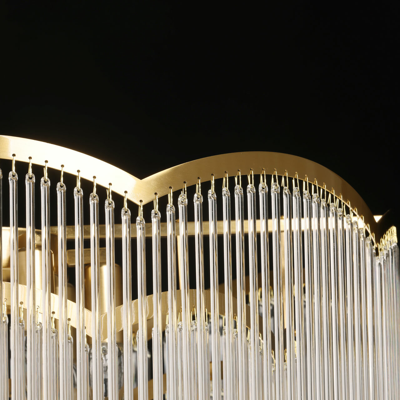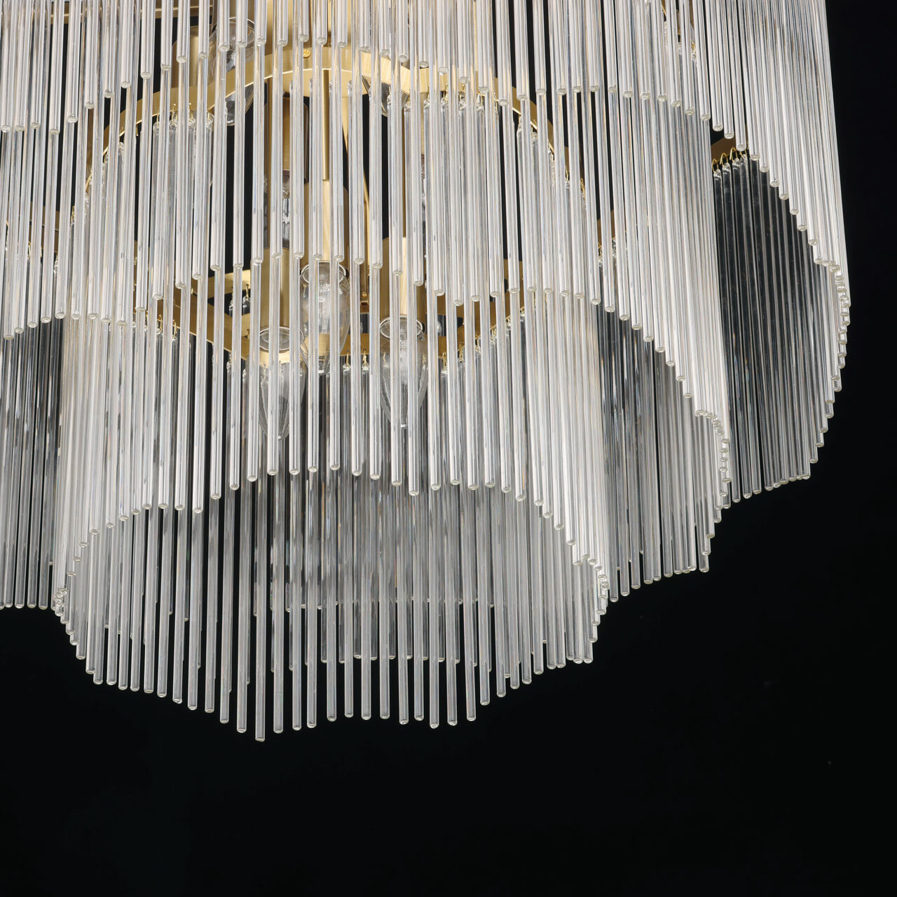 Гальваника в цвет хрома придает подвесной люстре современный и стильный вид. Единый и гармоничный образ создает привлекательный декор из стеклянных трубочек и металлических цепочек. Заменяемые источники света удобны в эксплуатации. Возможность регулировать комфортную высоту.