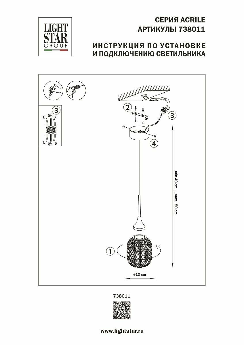 Бренд LightStar оснастил эту модель лампами с цоколем LED и максимальной мощностью 7 Ватт.