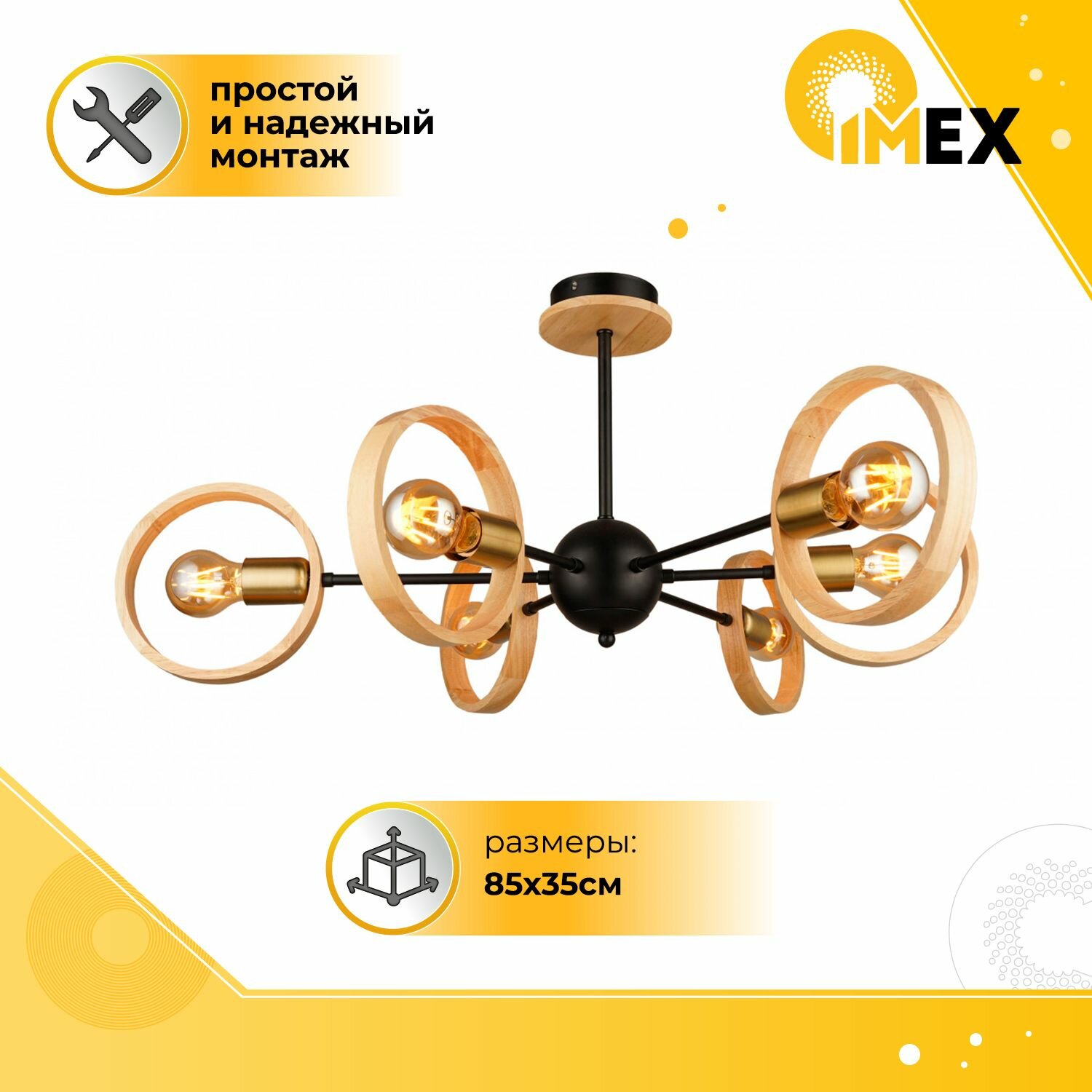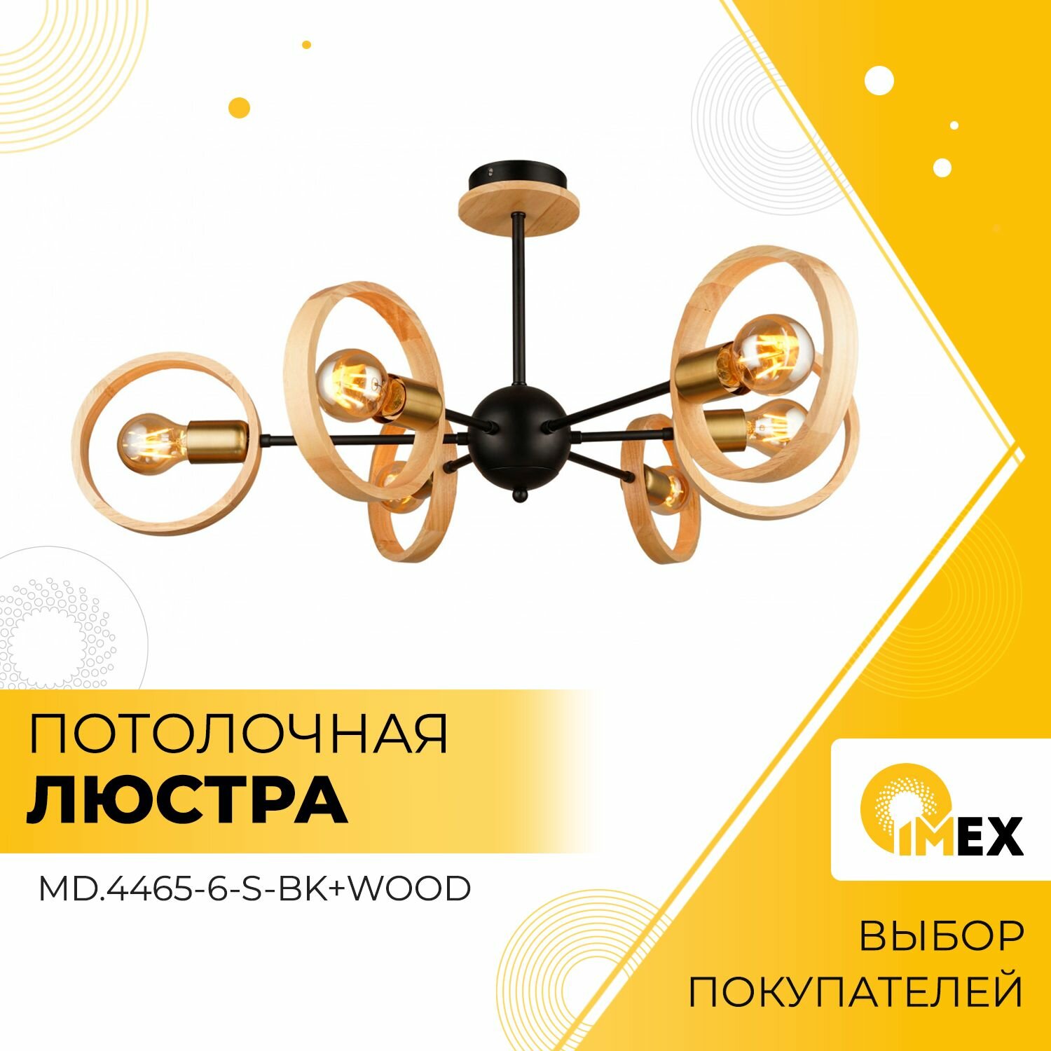 Потолочная люстра IMEX MD.4465-6-S-BK+WOOD