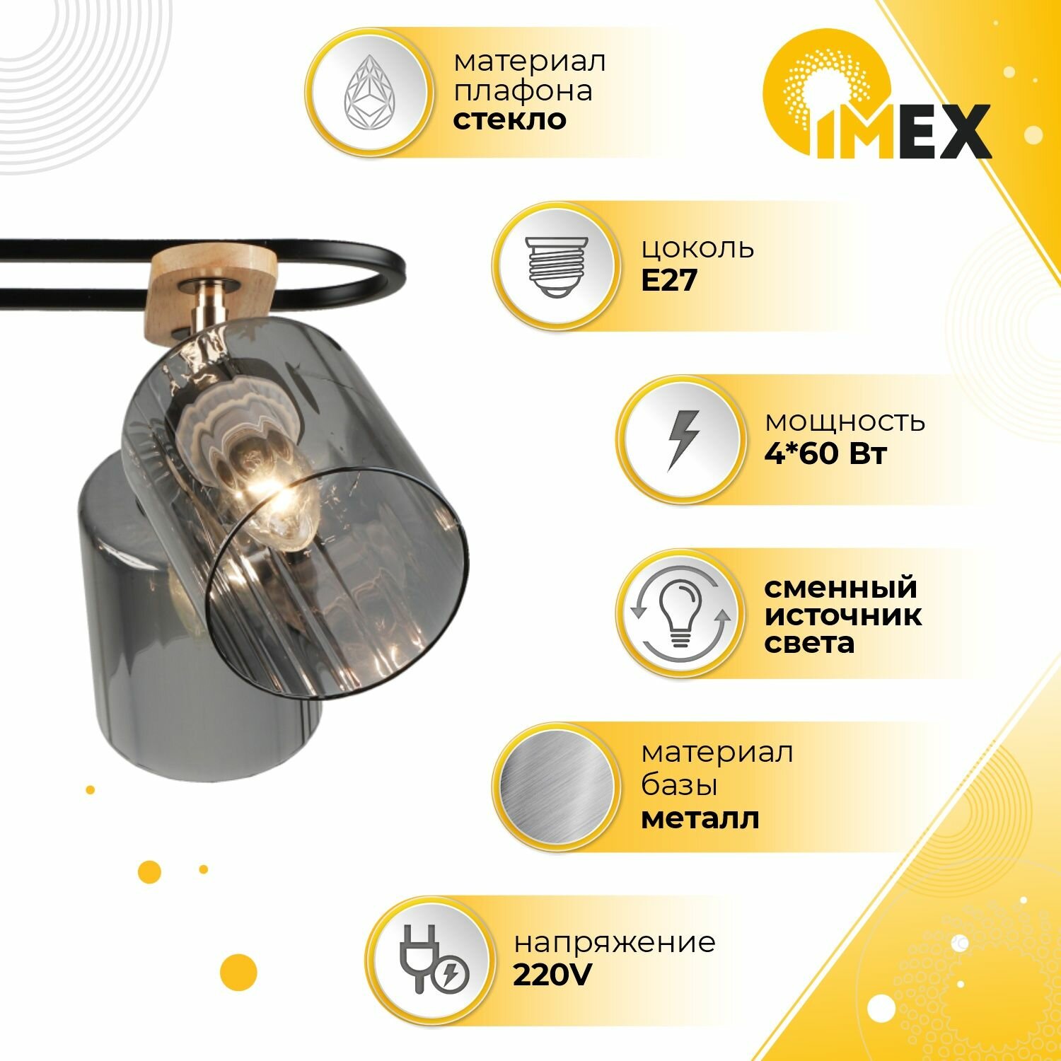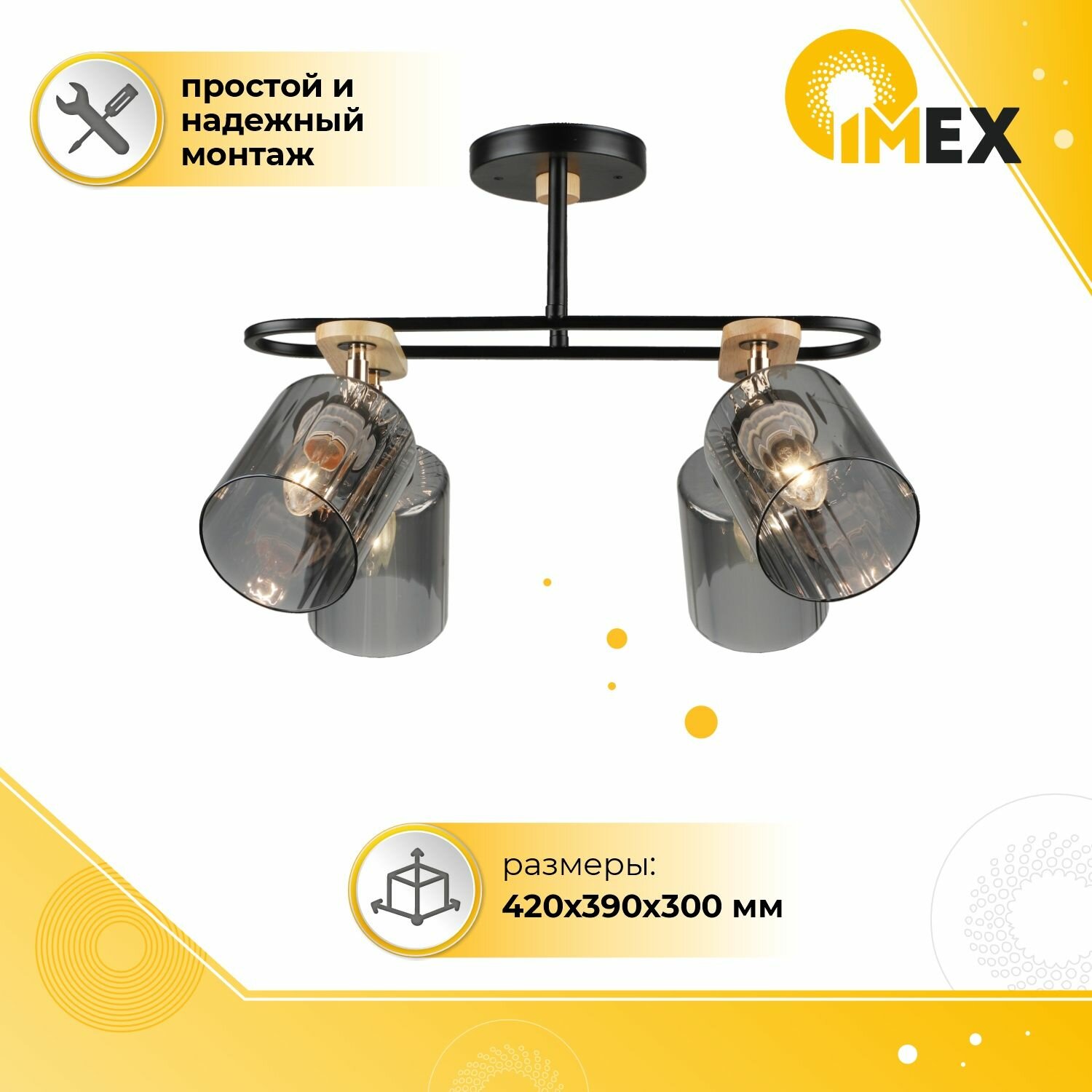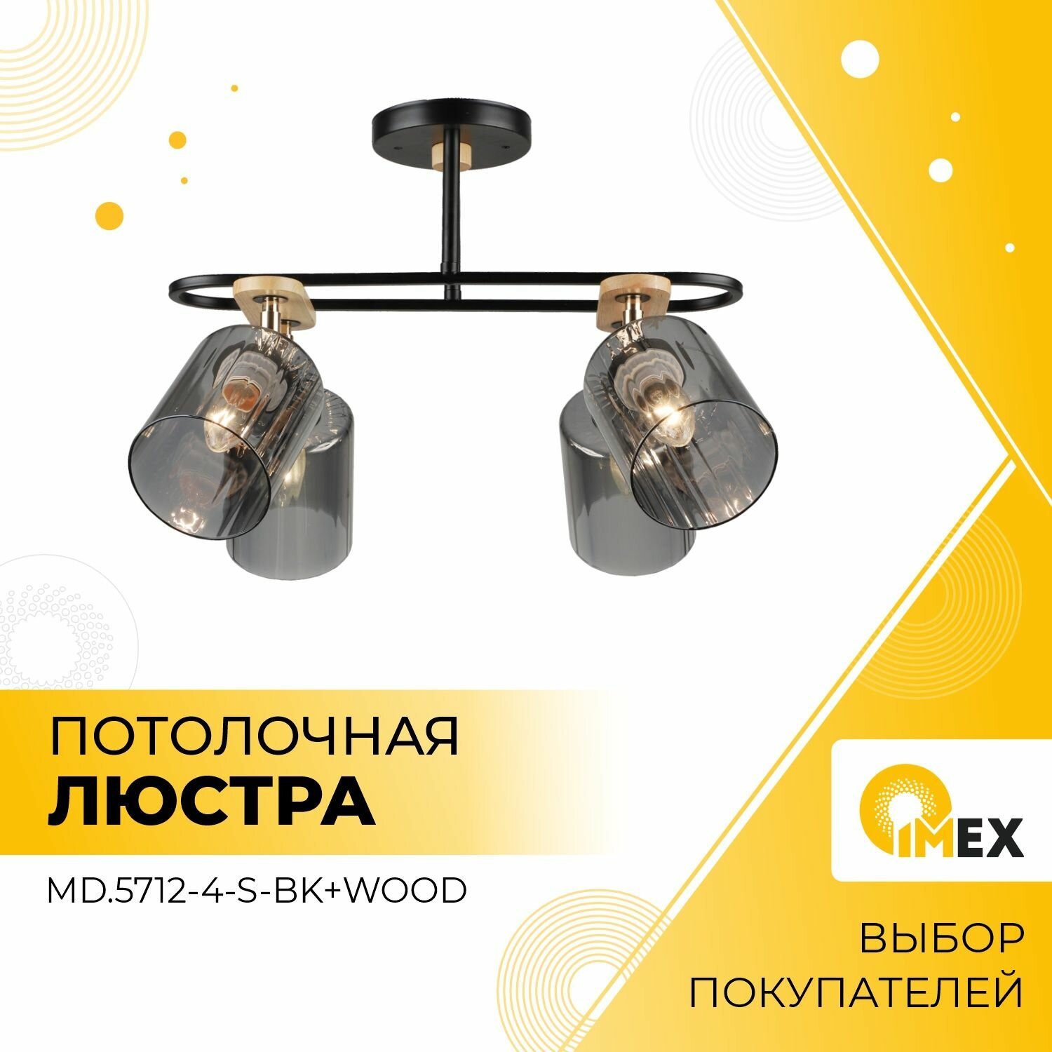 Потолочная люстра IMEX MD.5712-4-S-BK+WOOD