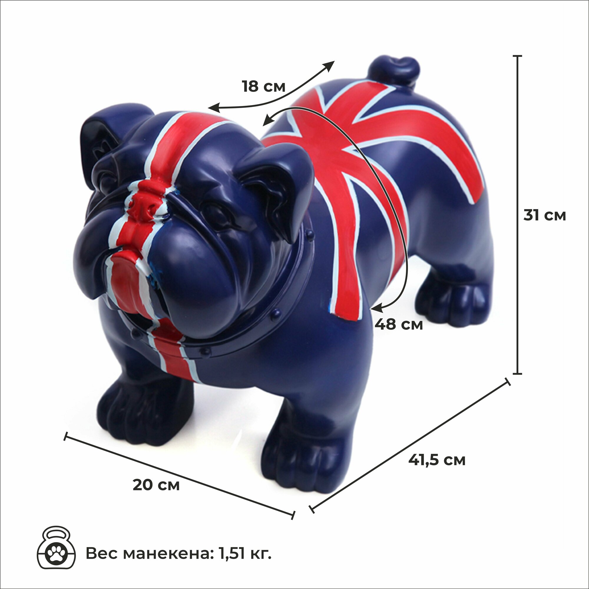 Манекен собаки AFELLOW "Английский бульдог Taz-3" синий с британским флагом 41.5х20х31см АС-КАПИТАЛ (манекены)