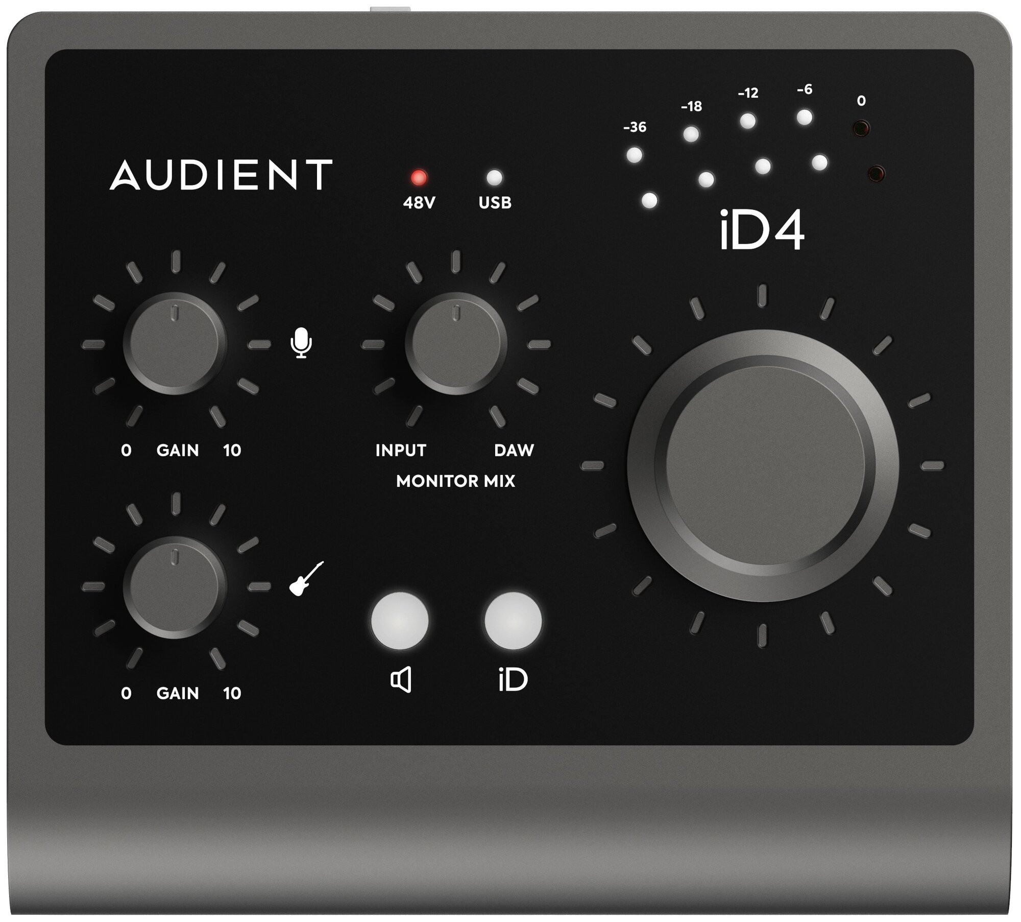 Audient — USB-аудиоинтерфейс, пришедший на смену базовой модели iD4, которая с 2016 года оставалась в статусе одной из лучших внешних звуковых карт. Аудиоинтерфейс оборудован фирменным микрофонным предусилителем класса A с фантомным питанием, дискретным инструментальным JFET D.I. входом, который имитирует входной каскад лампового усилителя, лучшей в классе технологией АЦ/ЦА-преобразования и управлением мониторингом, как на консоли. Коммутационные возможности представлены комбинированным XLR/TRS-входом, TRS-входом, парой TRS-выходов, двумя раздельными выходами для наушников, а также USB-C портом. В комплект с аудиоинтерфейсом входит пакет программного обеспечения, включающий Cubase LE, Cubasis LE для iOS, а также набор плагинов и виртуальных инструментов.