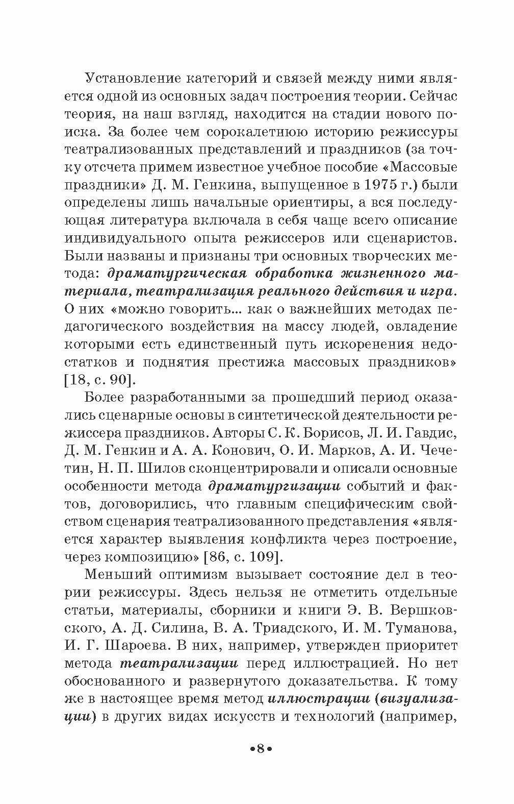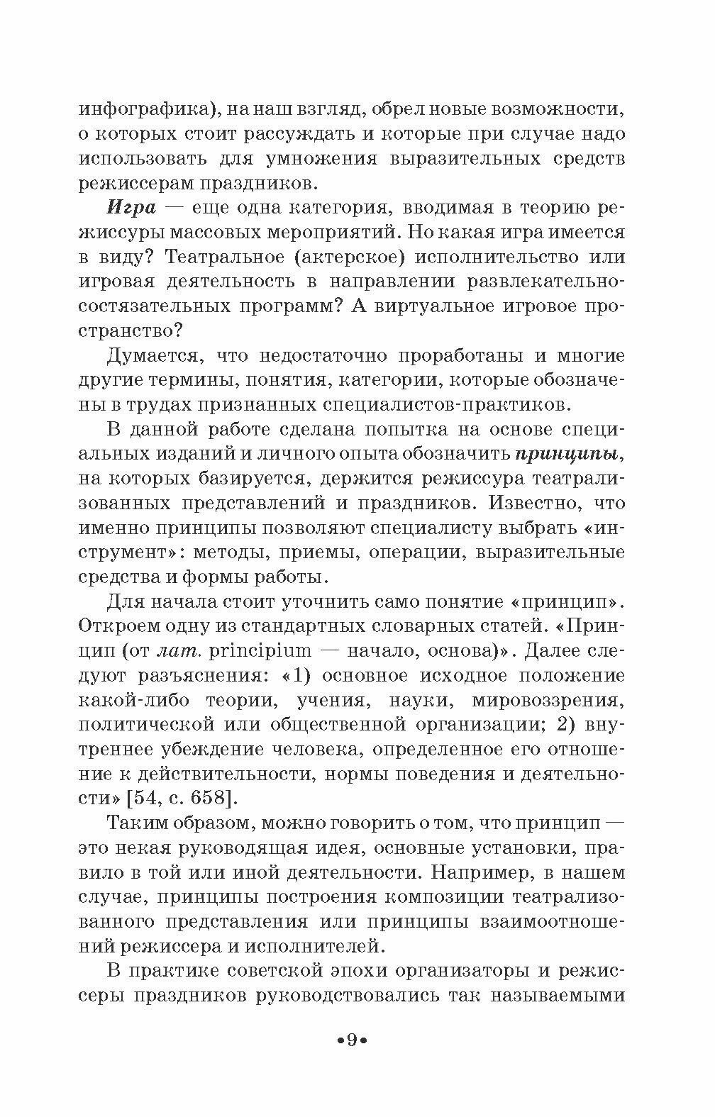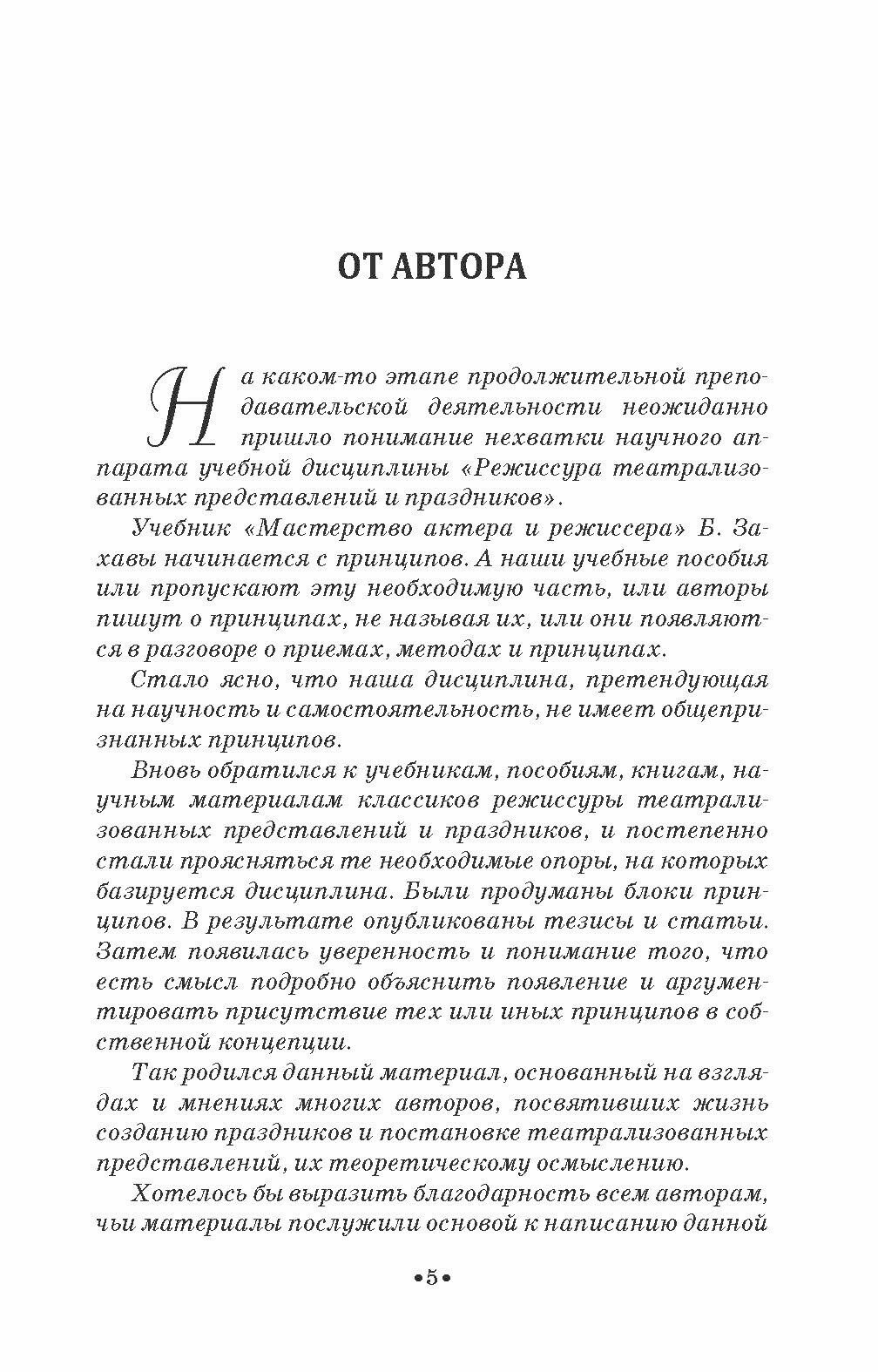 В книге проанализированы многочисленные материалы и источники и сделана попытка представить две группы принципов режиссуры театрализованных представлений и праздников. Данная работа является первым шагом к написанию фундаментального цикла пособий по режиссуре массовых представлений и праздников. Книга адресована студентам и педагогам средних специальных учебных заведений. 2-е издание, стереотипное.