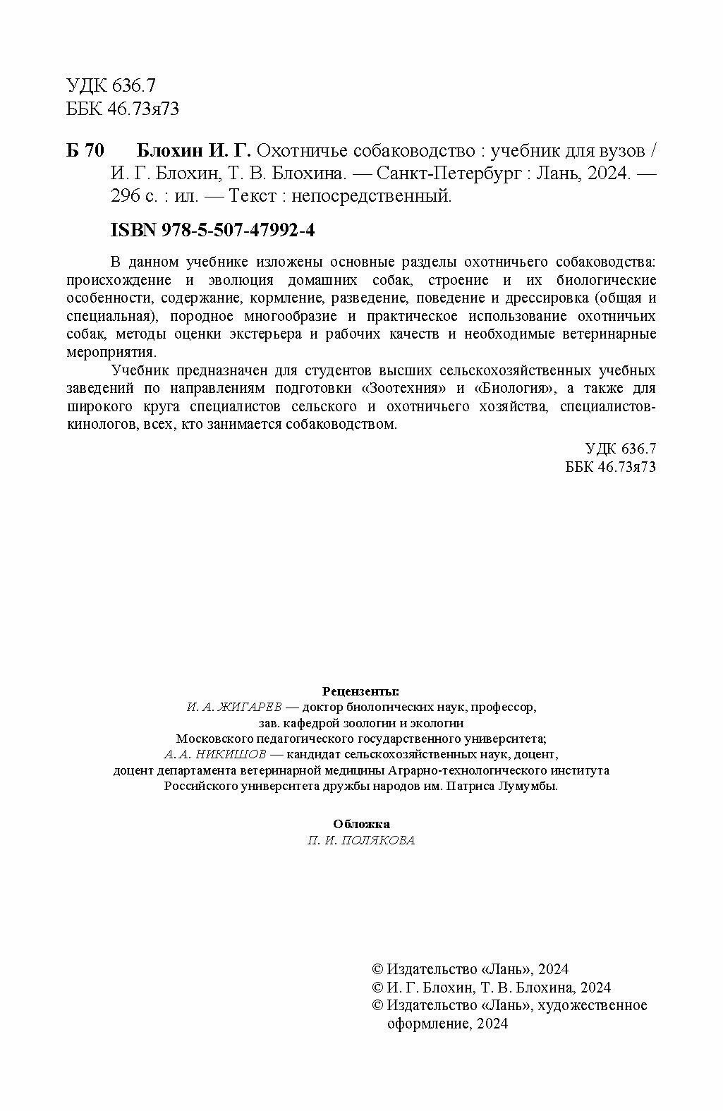 Охотничье собаководство. Учебник для вузов (Блохин Иван Геннадьевич, Блохина Татьяна Владимировна); Лань, 2024